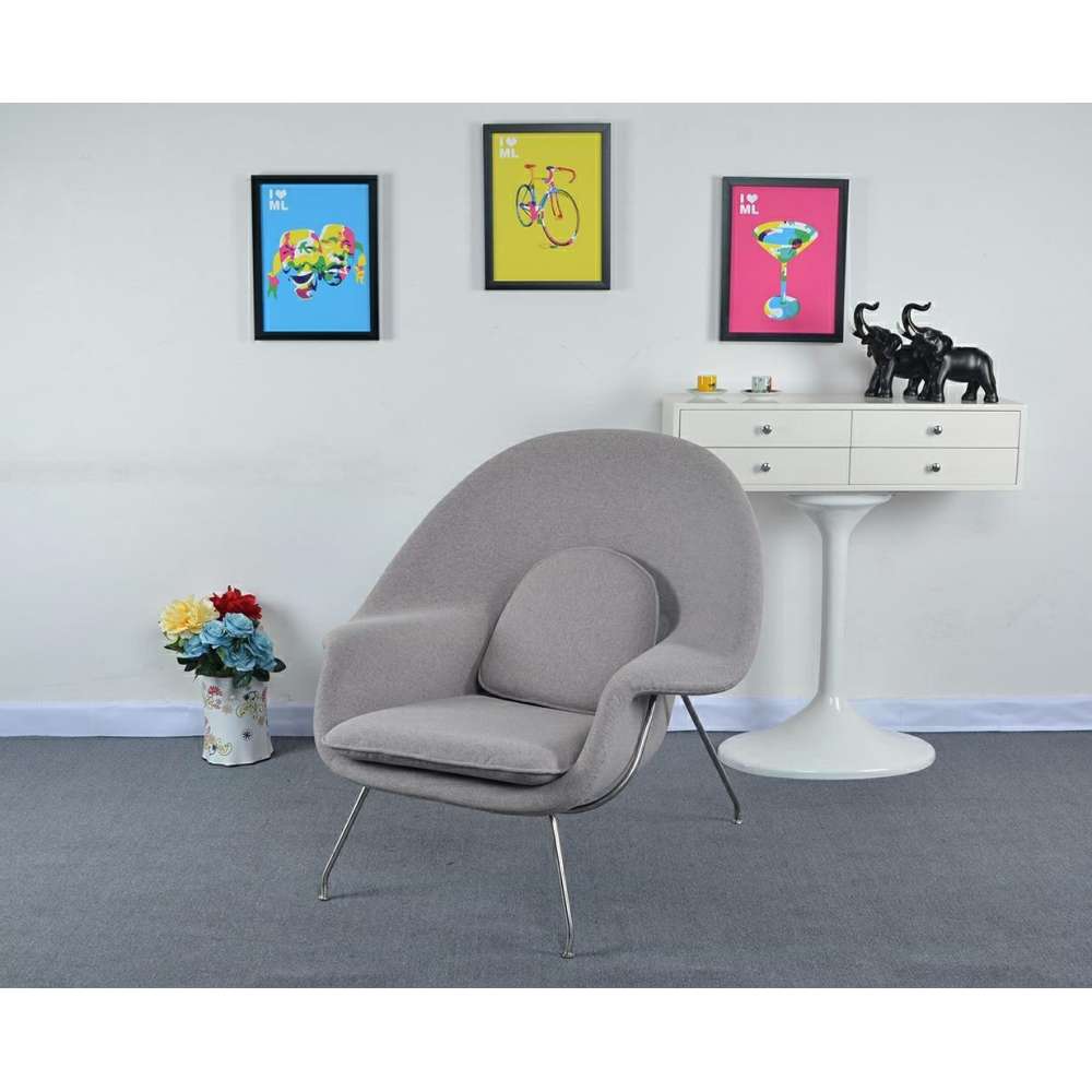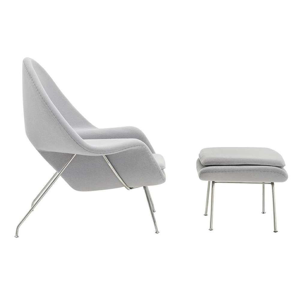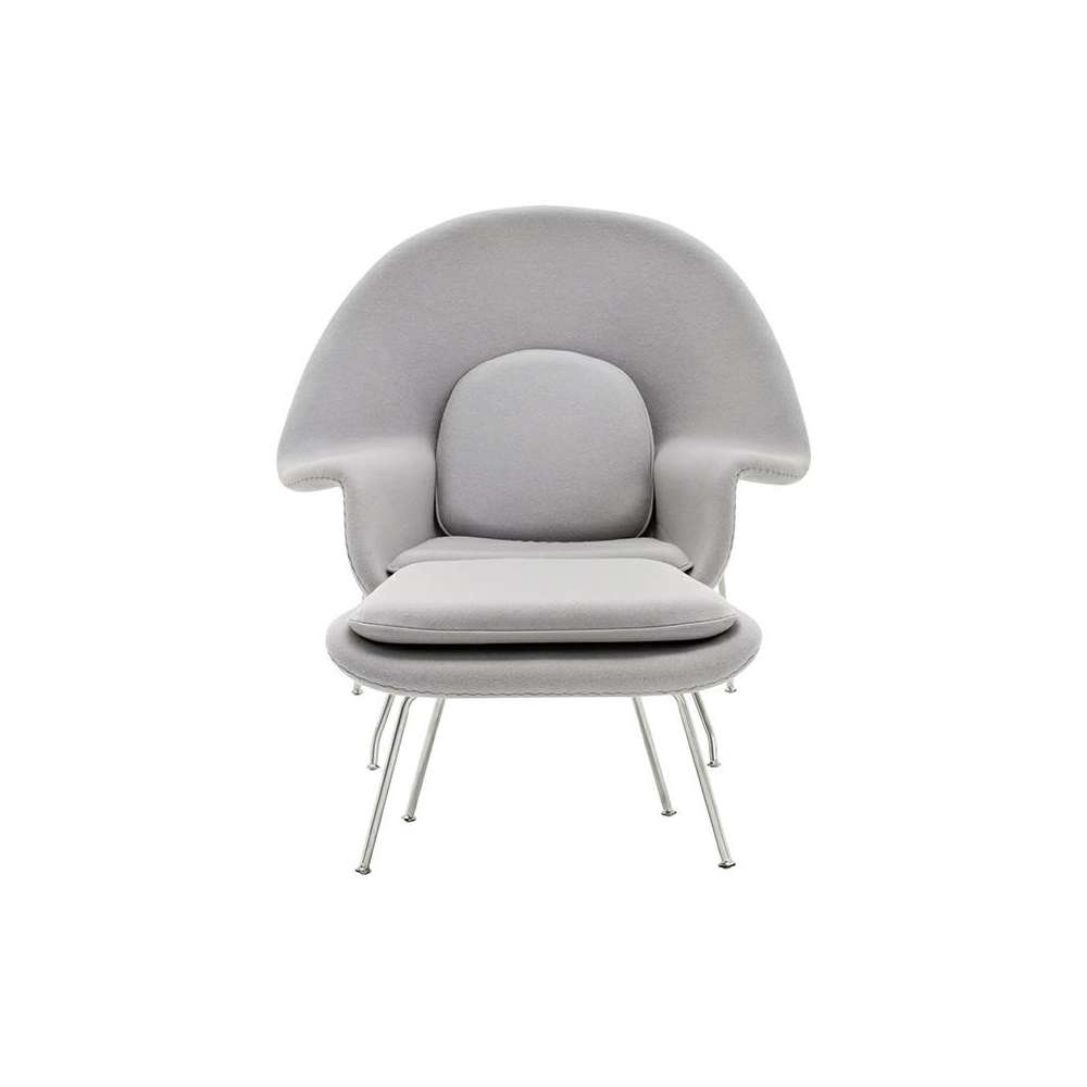 Fotel Cozy z podnóżkiem | szary. 18 - wełna Kaszmirowa | stal polerowana najlepsza cena, najwyższa jakość, bezpieczna płatność.