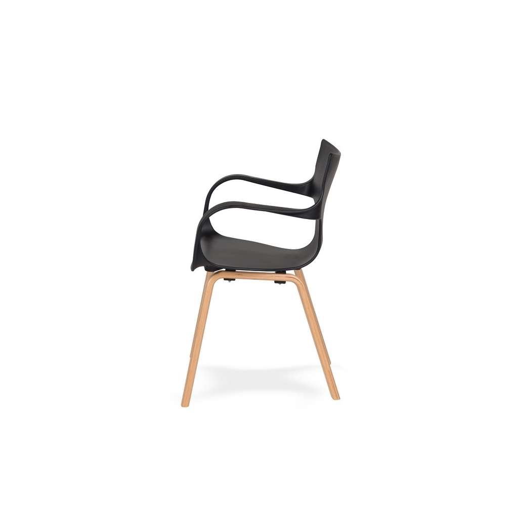 WINGS krzesło. Siedzenie jest wykonana z wytrzymałego tworzywa sztucznego, z polipropylenu. Siedzisko w kolorze czarnym, matowa. Podstawa z drewna bukowego. Łączenia nóżki z siedziskiem z czarnego polipropylenu. Fotel idealnie nadaje się do salonu i jadalni. Masa netto 1 p .: 4 kg Opakowanie wagowych: 5 kg Maks PCS. Na opakowaniu: Pakiet 4Wymiary: 60 cm x 48 cm x 62 cm Sposób dostawy: produkt do samodzielnego montażu Opakowanie: Tak