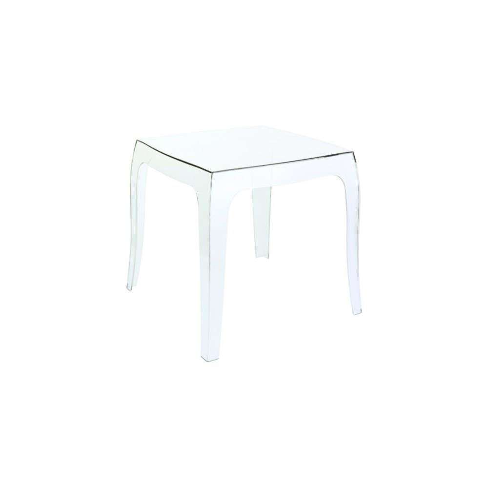 Nowoczesne Duch S tabela składa się z bardzo wytrzymałego poliwęglanu bezbarwny. Kwadrat na górę zgrabnych nogach idealnie nadaje się jako mały stolik, a także stół do przedszkola. Stoły łatwe do przechowywania, ponieważ mogą one być ułożone. Dzięki gładkiej powierzchni stołu jest bardzo łatwa do utrzymania w czystości. Tabela nie wymaga instalacji. Max. obciążenie: 50kg.