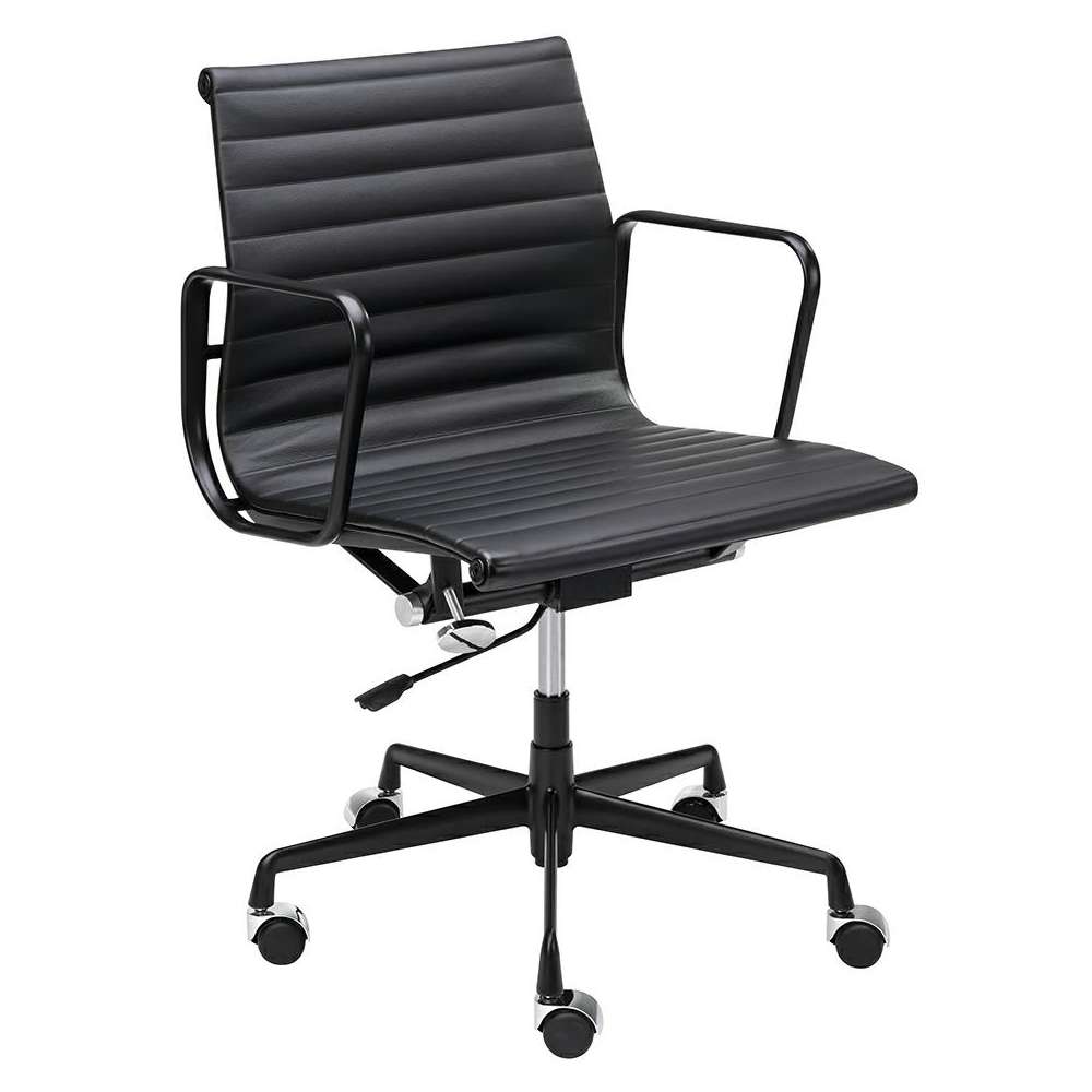 Krzesło biurowe Prestige Plus Korpus w kolorze czarnym. Minimalistyczna forma, która wprowadzi elegancji do swojego biura. Cała konstrukcja wykonana jest z litego aluminium w czarnym satynowym kolorze. Siedzisko i oparcie są tapicerowane ze skóry naturalnej w kolorze czarnym. felgi chromowane i szycia skóry, podkreślają charakter krześle. Siedzenie jest obracany z funkcją kołysania i zakresu regulacji wysokości 11 cm. Wyprofilowane oparcie zapewni odpowiedni komfort i wygodę. Masa netto 1 p .: 15 kg opakowaniu Waga: 18 kg wymiary opakowania: 72 cm x 41 cm x 65 cm, metoda dostarczania: liczba PaczkaMaksymalna jednostek. Pojemnik: 1Produkt do samodzielnego montażu: Tak