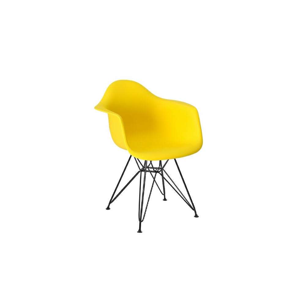 Fotel DAR BLACK. Fotel jest w całości wykonany z polipropylenu słoneczne żółty kolor o odcieniu mat. Mocnego podłoża jest wykonana z metalu, lakierowana czarny proszek. Black jest darem, wygodne krzesło, dzięki zastosowaniu tworzyw sztucznych jest łatwa do czyszczenia. Idealny do jadalni, salonu lub pokoju dziennego. Wytrzymałość na rozciąganie: 120 kg Maks cz. Na opakowaniu: 2Waga netto: 5,5 kg opakowaniu wagowych: 6,5 kg Sposób dostarczenia Paczka Wymiary opakowania: 60 cm x 60 cm x 79 cm, do samodzielnego montażu Tak