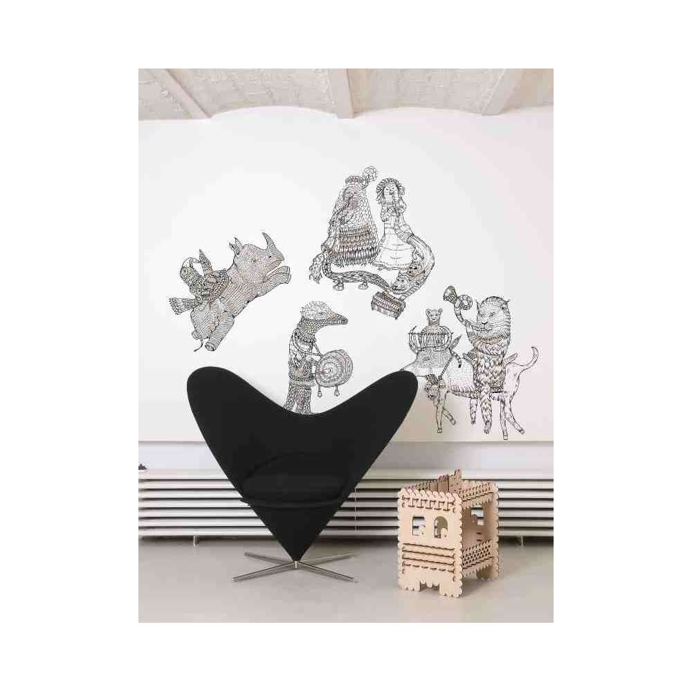 Naklejki to kolekcja naklejek ściennych zaprojektowanych przez grafików, projektantów i artystów pochodzących z kreatywnych terytoriów i różnorodnych środowisk. Prawdziwa alternatywa dla tapet, kolekcja Stickers dosłownie przekazuje użytkownikowi, który zostaje zaproszony do przekształcenia swojego wnętrza w przestrzeń ekspresji i staje się pomysłodawcą własnego wystroju. Dzięki naklejkom «przestrzeń ściany» staje się miejscem gry w kompozycję i narrację, w którą można inwestować i wymyślać. Wolna od ograniczeń tapety, kolekcja Stickers, poza praktycznym zainteresowaniem (nie potrzebujesz już stołu do wklejania ani wklejania), pozwala lepiej zastanowić się nad miejscem i rolą wystroju i dekoracji w nasze wnętrza. Tutaj, gdzie całość lub część kolekcji czerpie swoją wizualną siłę z płaskich odcieni bez koloru grafiki wektorowej i gdzie tylko linia podziału daje początek rysowaniu, inna część kolekcji otwiera spektrum graficzne na stopniowane kolory, do nakładających się kolorów, do wyszukanych tekstur, do ręcznych nadruków, co daje początek estetyce bardziej „low tech”. Łatwe do ustawienia, samoprzylepne, wybierz swój model z kolekcji, sam wymyśl swoją wizualizację i udekoruj ścianę, drzwi, mebel… w swoim domu.