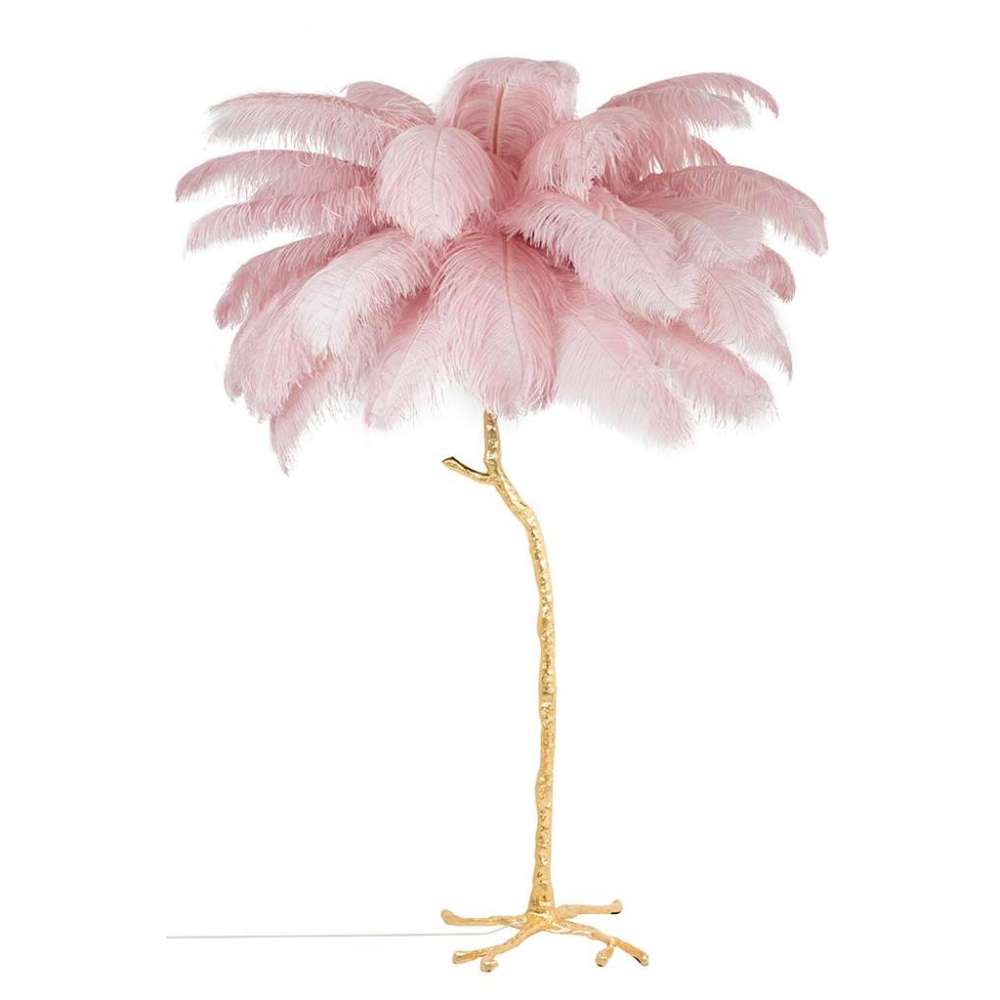 Lampa podłogowa TIFFANY 175 różowa mosiądz / naturalne pióra