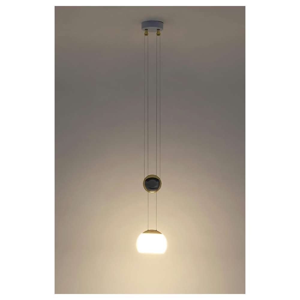 Kontrola jest lampa z okrągłym obiektywu. Klosz wykonany jest z mlecznego szkła z metalem zamontować w złocie. Pokrywa jest zawieszona na linach stalowych połączonych dysku złota. Za pomocą przewodów, można łatwo regulować wysokość lampy. Całość jest dołączony do białego metalu podsufitki. lampki kontrolne są szczególnie zalecane do użytku wewnętrznego w rodzaju urok, jak również nowoczesnym, minimalistycznym lub przemysłowym. Kontrola świetnie wygląda w salonie, kuchni, przedpokoju, sypialni, a także barów, restauracji, Światło: E 27 MAX 6 WWaga netto 1 szt. 4 kg Waga opakowania: 5 kg maksymalna ilość przedmiotów. W opakowaniu: 1Wymiar opakowanie 45 cm x 22 cm x 14 cm, sposób podawania Paczka produkt kombinowany Tak