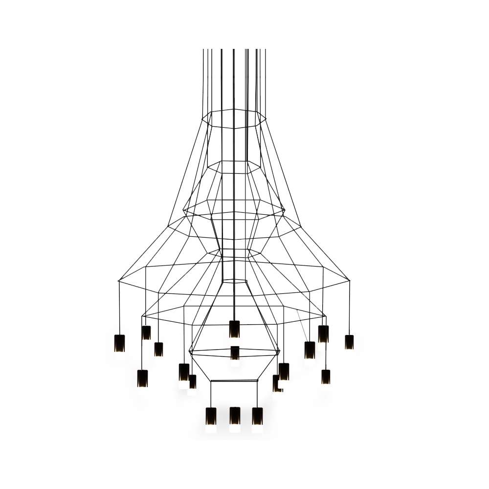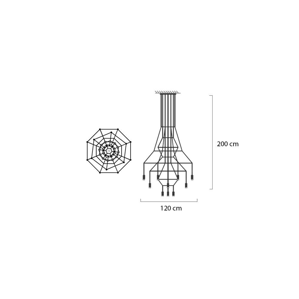 Lampa wykonana jest z drutów stalowych osadzonych w barach. Satynowe odcienie szkła. źródło światła: LED G9 20x3W Max szt. Na opakowaniu: pakiet 1Wymiary: 115 cm x115 cm x12 cm Sposób dostawy: produkt do samodzielnego montażu Opakowanie: Tak