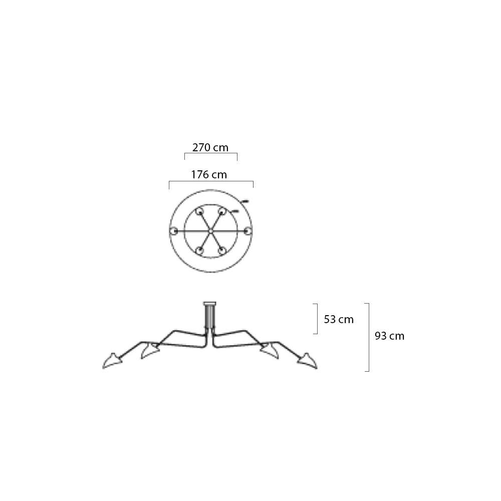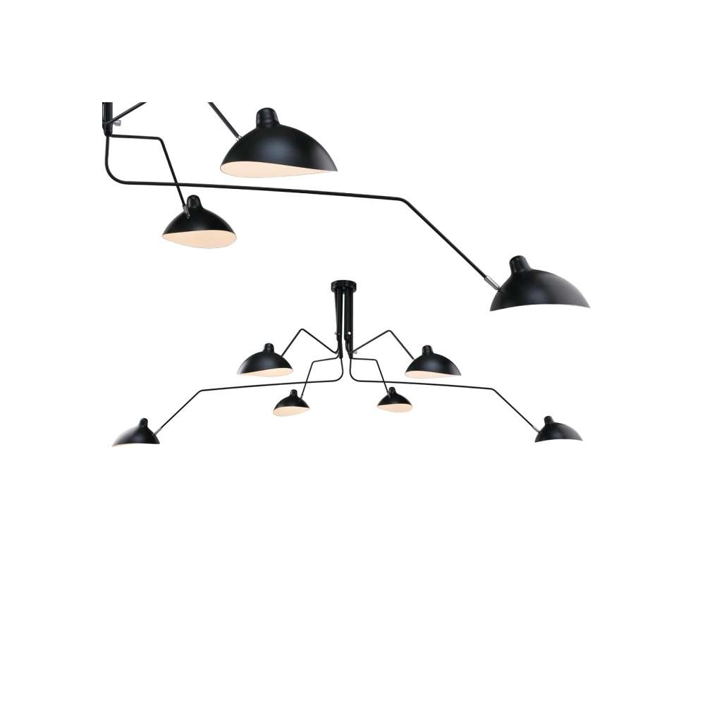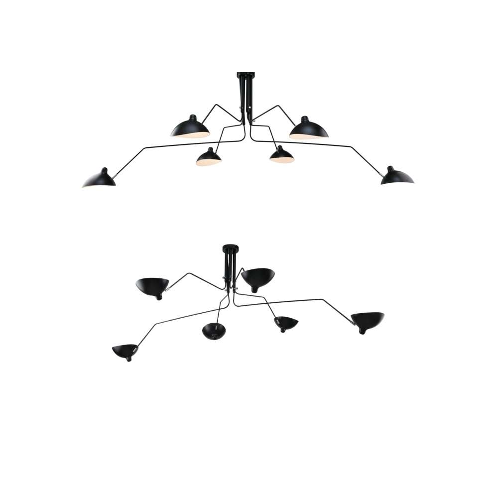 Lampa składa się z 6 ramion wykonanych z metalu. Ręczne cięcie i uformowany korpus są zamontowane na konstrukcjach stalowych. Przykryć zewnątrz czarny mat, biały mat wnętrza. źródło światła E netto 27Waga 1 P .: 14 kg Opakowanie wagowych: 16 kg jednostki Max. Pojemnik: Sposób wysyłki 1: produkt do samodzielnego montażu Opakowanie: Tak