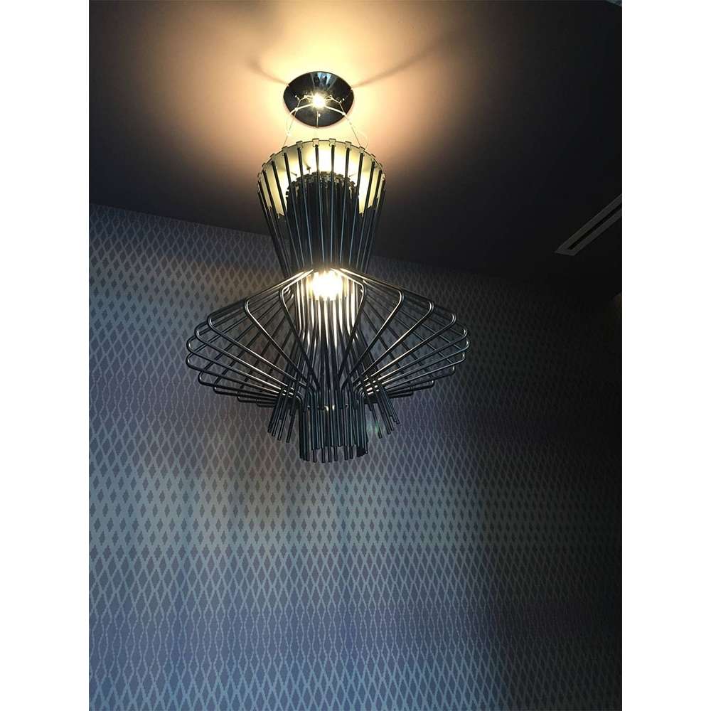 Lampa jest wykonana ze stali węglowej. Składa się on z kilku prętów okrągłych. Źródło światła: 2 x E27Maksymalna liczba sztuk. Pojemnik: Sposób wysyłki 1: produkt do samodzielnego montażu Opakowanie: Tak
