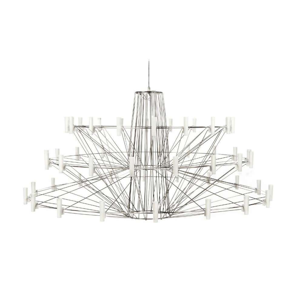 Lampa Ballerina. Konstrukcja lampy wykonana z włókna szklanego w kolorze srebrnym. Mleczne klosze były wykonane z akrylu. 3 pierścienie stalowe umieszczone łącznie 54 soczewek z diodami LED źródła światła. Długość przewodu: 200 cm Źródło światła LED 54 Masa netto 1 P .: 6 kg Gramatura: 7 kg Maks cz. Na opakowaniu 1Wymiary: Opakowanie: 110 cm x 110 cm x 62 cm, metoda dostarczania Paczka wymiarową. Iloczyn samodzielnego montażu: Tak