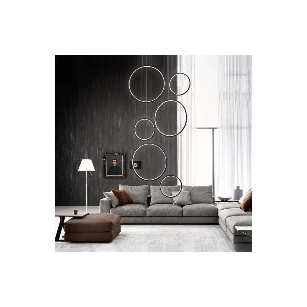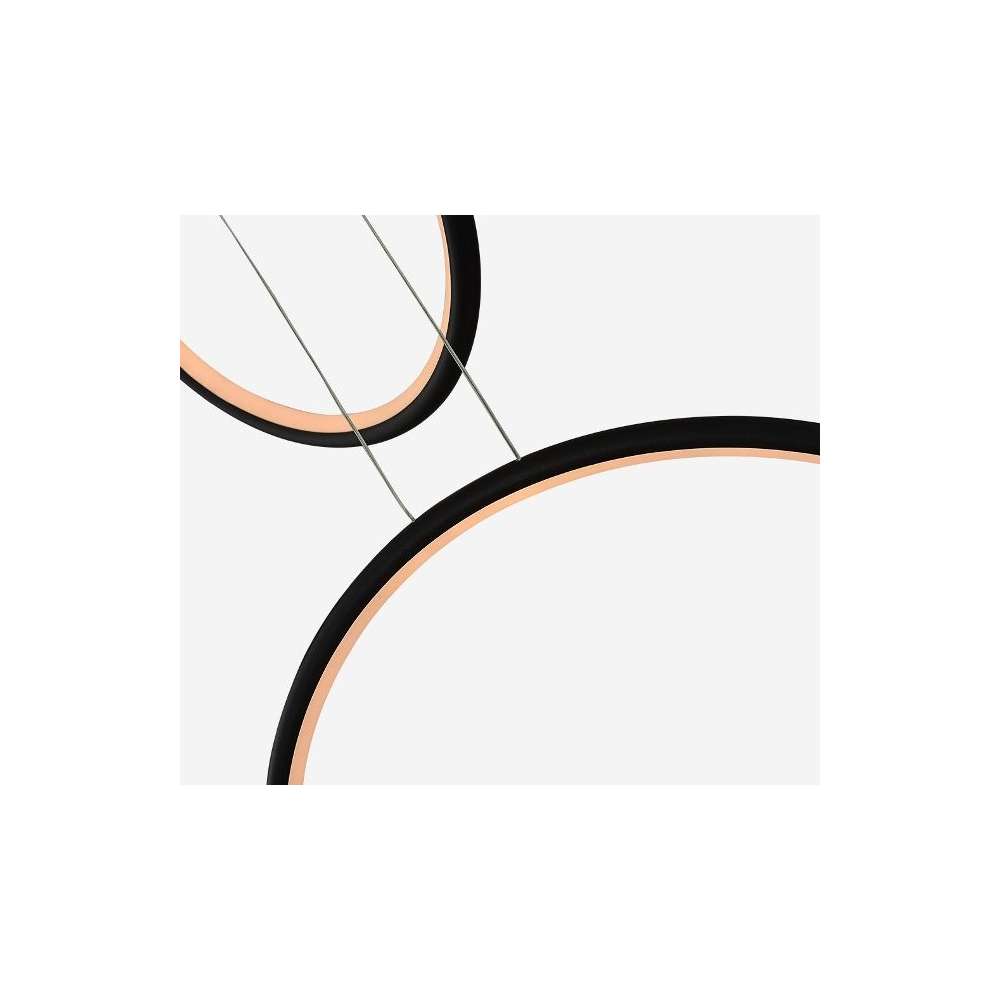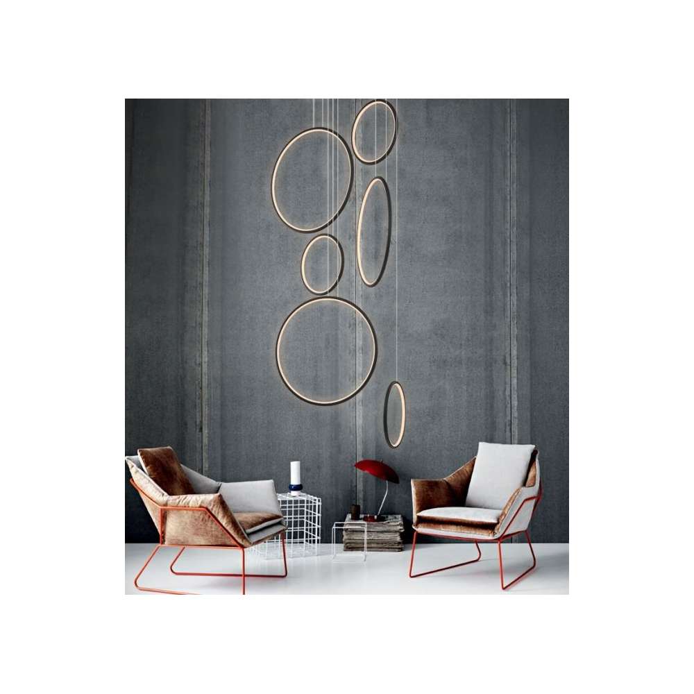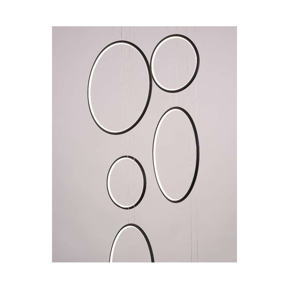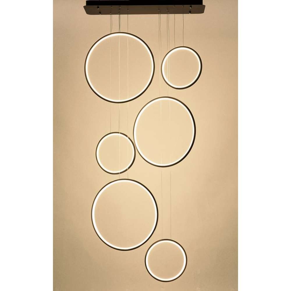 Nowoczesne projektant i zawieszane LEDVISION H w pierścieniu sześciu emitującej światło o dużej mocy 130W światło czarny kolor światła LED i gorącej 3000K. Lampa szczególnie zalecany do nowoczesnych wnętrz, biur, jak i holu.