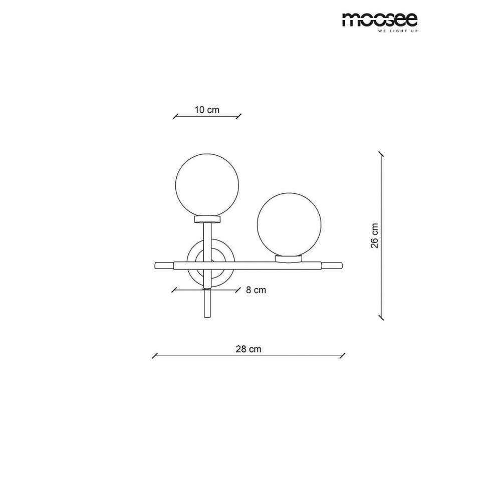 Lampa ścienna ściany Cosmo R od marki MOOSEE. Modele z kolekcji Cosmo charakteryzuje wykonanie połączenia metalu w kolorze czarnym satynowym, złotym i dekorów szklanych soczewek sferycznych. Dwa odcienie wykonane z mlecznego szkła umieszczonego na poziomym stojaku, wskazując na prawo. W każdej z tych soczewek jest źródło światła LED. Mieszaninę reakcyjną umieszcza się na okrągłej uchwytu. Kinkiet montowany bezpośrednio do montażu na ścianie. R Cosmo Ściana przyciąga uwagę eleganckim stylu i starannym wykonaniem. Lampka zapali się wnętrze pokoju z powodzeniem dziennego, sypialni, łazience czy holu. Światło zestaw źródło: 2 x LED G4 2,5WWaga netto 1 P .: 3 kg opakowaniu waga: 5 kg wymiary opakowania: 41,5 cm x 33,5 cm x 9 cm on maksymalną liczbę elementów. Pojemnik: Sposób wysyłki 1: Produkt Pack dla samodzielnego montażu: Tak