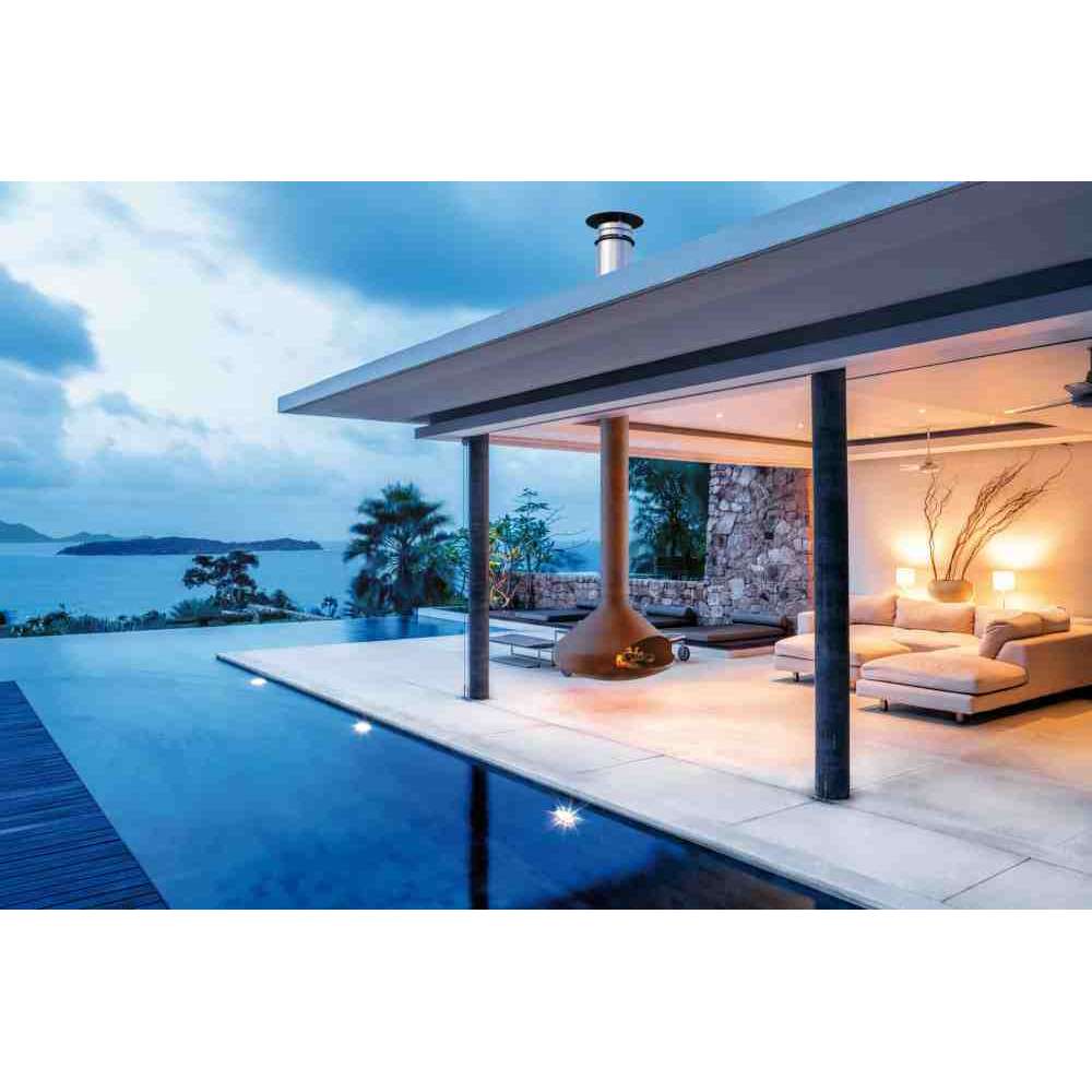 Niektóre z naszych modeli kominków podwieszanych mogą być specjalnie przystosowane do użytku na zewnątrz. Adaptacje obejmują obróbkę powierzchni farbą antykorozyjną, korekty pod kątem wyładowania pirolitycznego i inne specyficzne modyfikacje. Te kominki są zaprojektowane tak, aby wytrzymać próby czasu. Oprócz modeli przedstawionych na tych stronach, Magmafocus może być przystosowany do instalacji na zewnątrz. Płyty nośne i izolowane przewody kominowe mogą być również wykonane na wymiar. Te kominki zewnętrzne muszą być otwarte (bez szklanych paneli). Zaprojektowane do użytku w połowie sezonu lub zimą, w dzień lub w nocy, ich zniewalająca magia przyciąga miłośników prawdziwego ognia. I nic nie stoi na przeszkodzie, aby były używane jako grill.