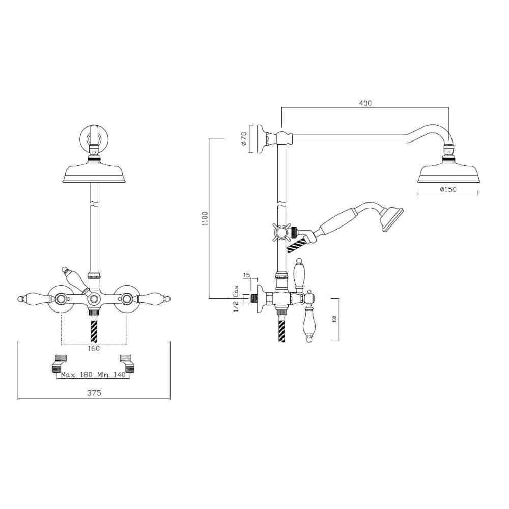 Wielofunkcyjny mosiężny panel prysznicowy do montażu na ścianie Bleu Provence RD118