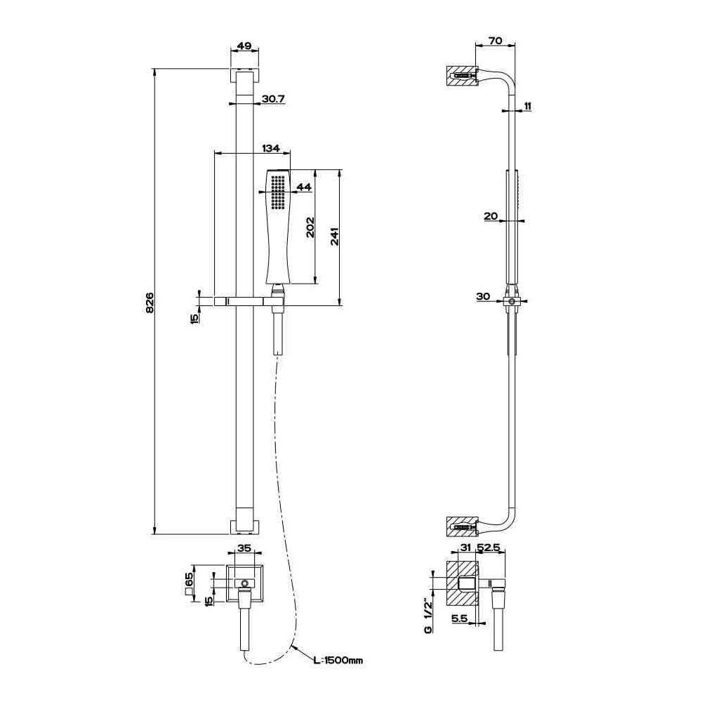 Mosiężny drążek prysznicowy z główką prysznicową Gessi Mimi