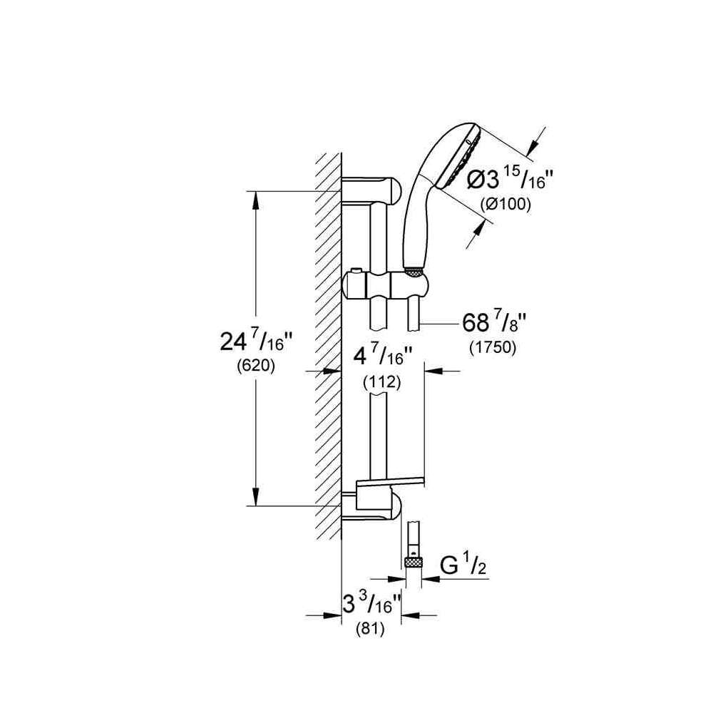Ścianka prysznicowa z główką prysznicową z wężem i mydelniczką Grohe Tempesta 100