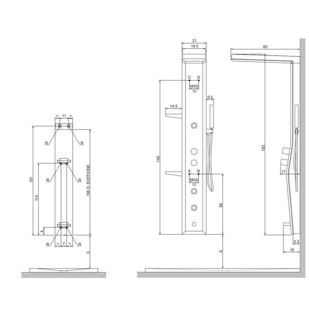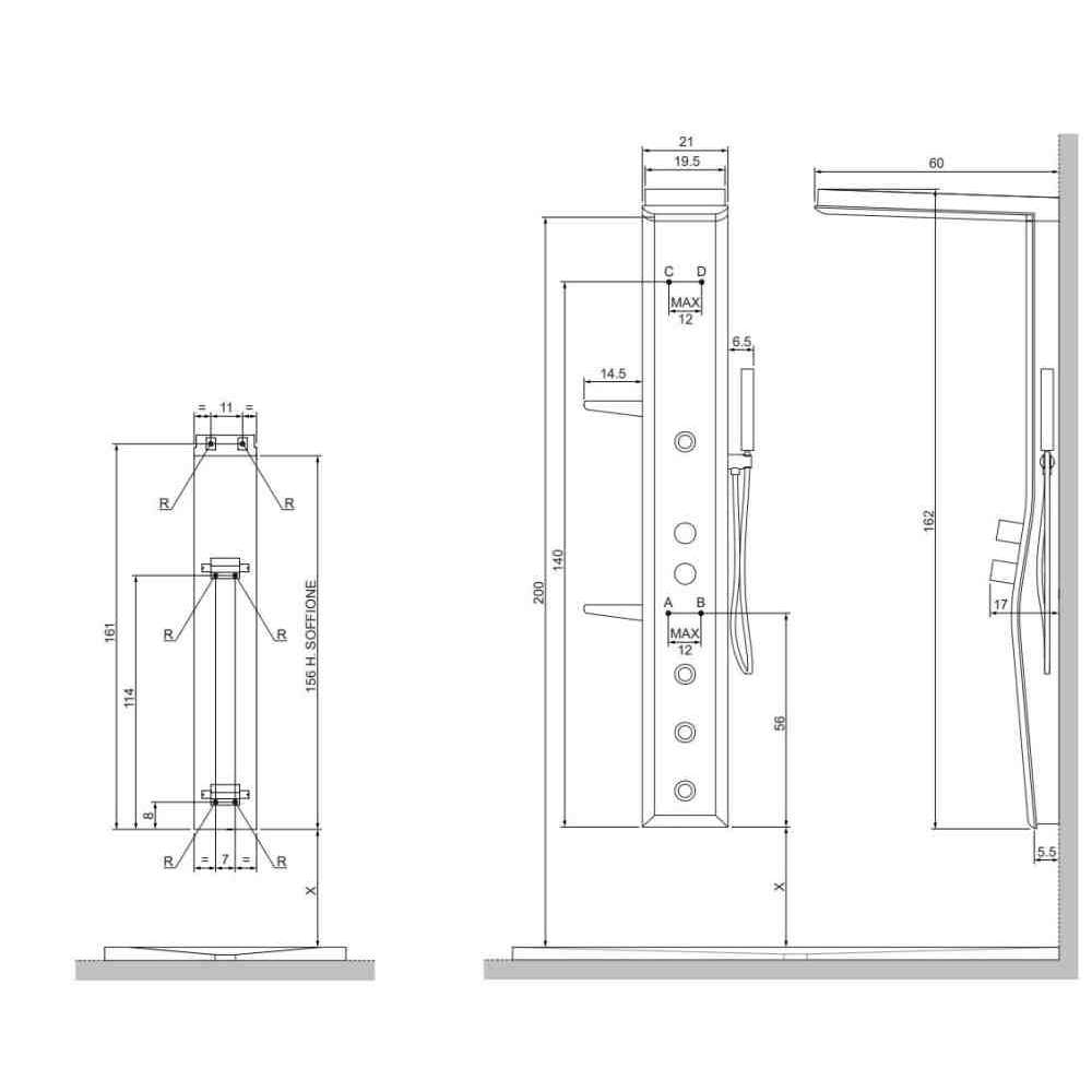 Gruppo Geromin, Etoile, Panele prysznicowe, Prysznice i wanny, Baterie łazienkowe, Panel prysznicowy, Panele prysznicowe w stylu współczesnym, Panele prysznicowe metalowe, Panele prysznicowe stalowe, Panele prysznicowe wielofunkcyjne, Panele prysznicowe z chromoterapią, Panele prysznicowe z głowicą prysznicową, Prysznic naścienny panele, doccia z radiem