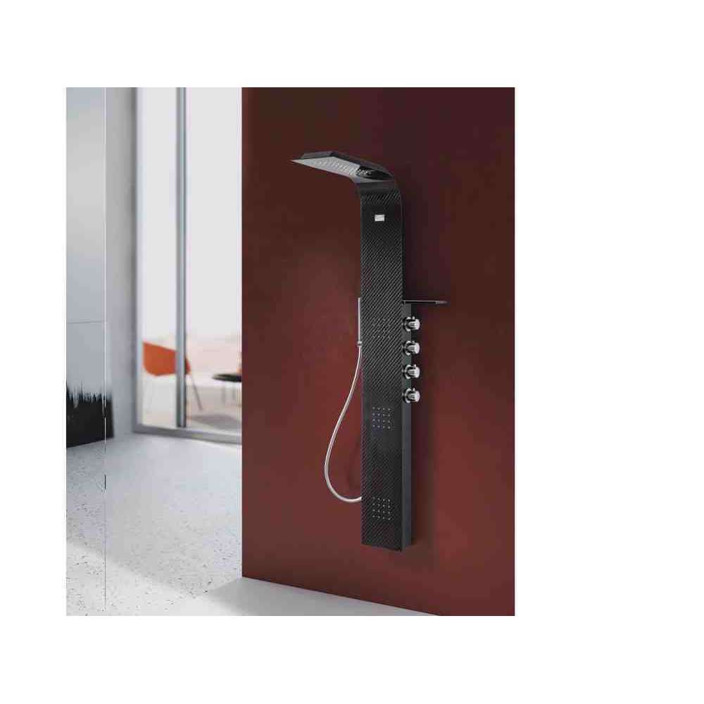 Naścienny termostatyczny panel prysznicowy z głowicą górną Gruppo Geromin Lama Fibra di carbonio
