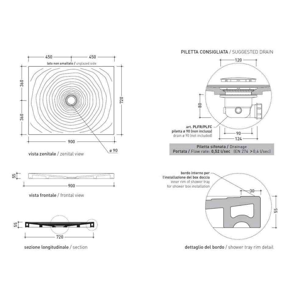 Brodzik ceramiczny Ceramica Flaminia Water Drop 90 X 72