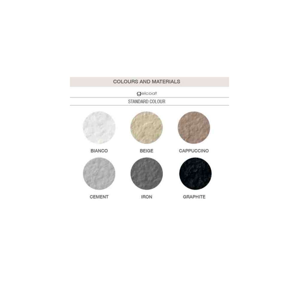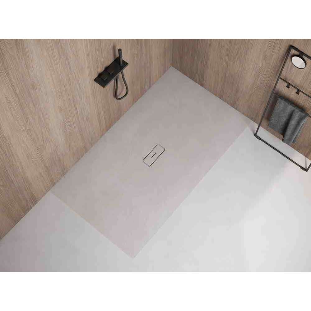 Bardzo płaski brodzik o fakturze cementu, wyprodukowany z żelkotu klasy sanitarnej. Brodzik można w pełni dostosować do wszystkich potrzeb dzięki możliwości montażu do wbudowania lub na chodniku, szerokiej gamie formatów cm na cm, sześciu kolorom do wyboru i możliwości indywidualnego docięcia