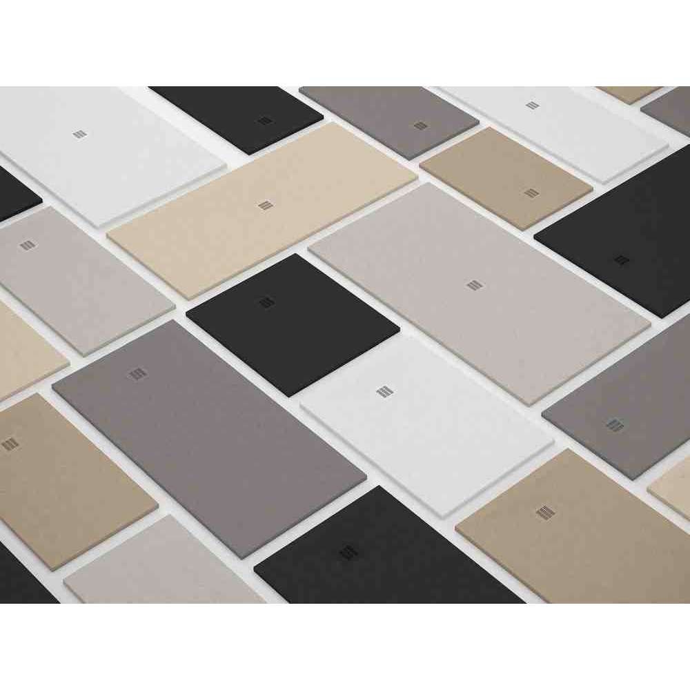 Bardzo płaski brodzik prysznicowy o fakturze łupka, wyprodukowany przy użyciu żelkotu klasy sanitarnej. Dzięki opcjom montażu do wbudowania lub na chodniku, szerokiej gamie standardowych formatów i sześciu kolorom do wyboru, brodzik można w pełni dostosować do wszystkich potrzeb