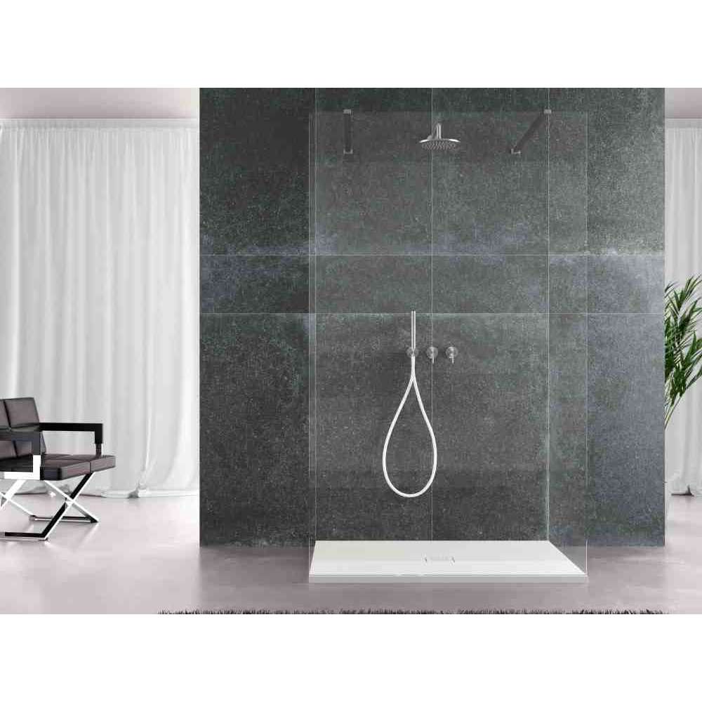 Opatentowany przez Scarabeo, STEP nie jest prostym brodzikiem, ale powierzchnią ceramiczną, wykonaną w jednym bloku o grubości 28mm, który można przyciąć na wymiar podczas montażu i doskonale nadaje się do montażu zlicowanego z piętro. Rozwiązanie, które eliminuje wszelkie problemy związane z rozmiarem pod względem powierzchni i grubości, ponieważ można je zmieścić w dowolnym miejscu z niezwykłą łatwością.