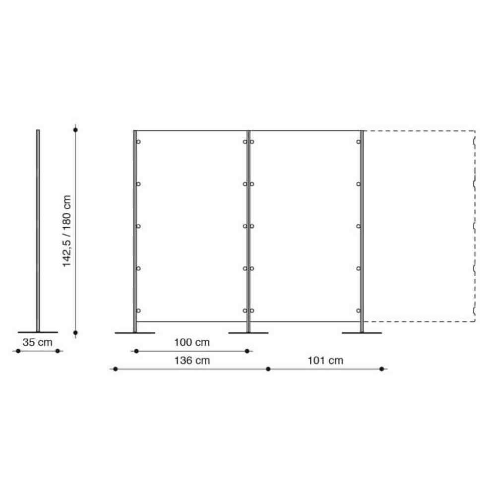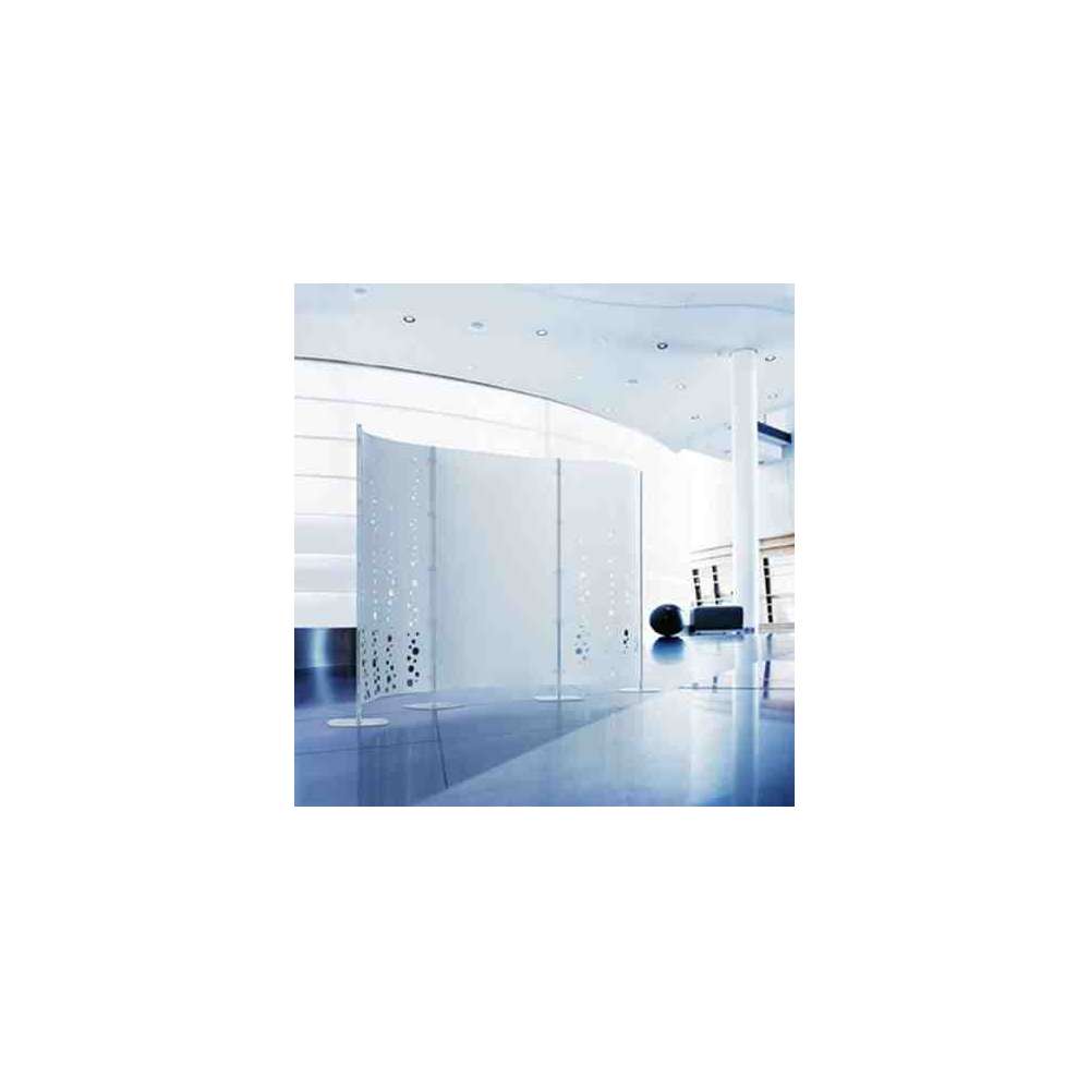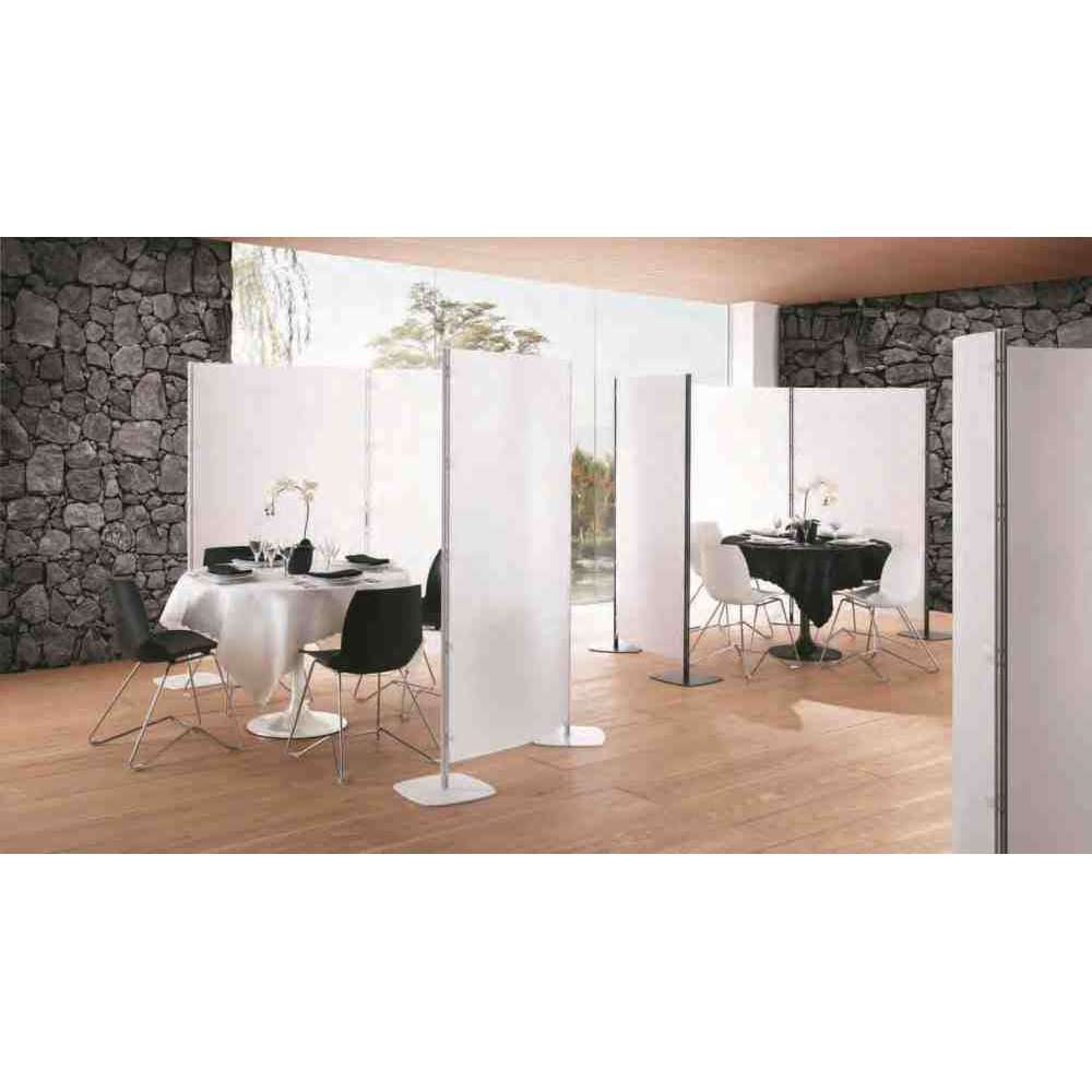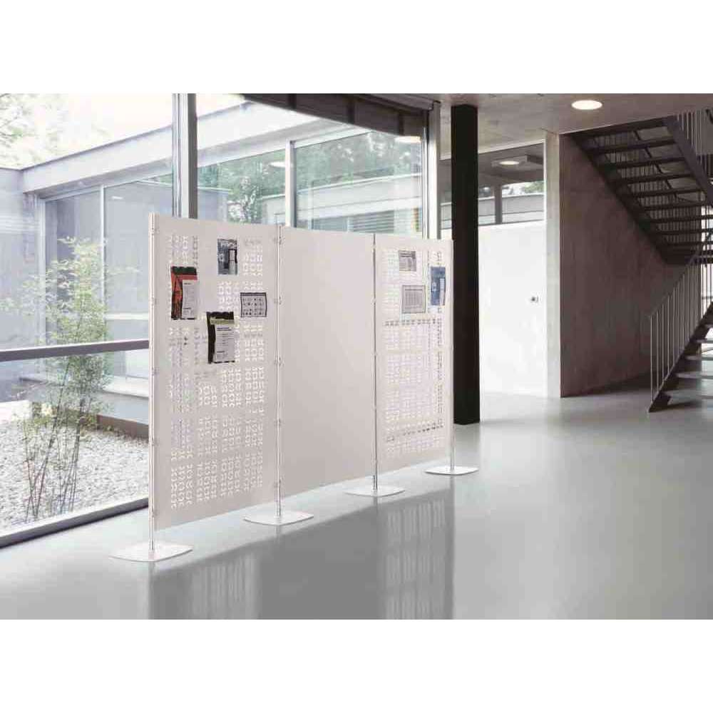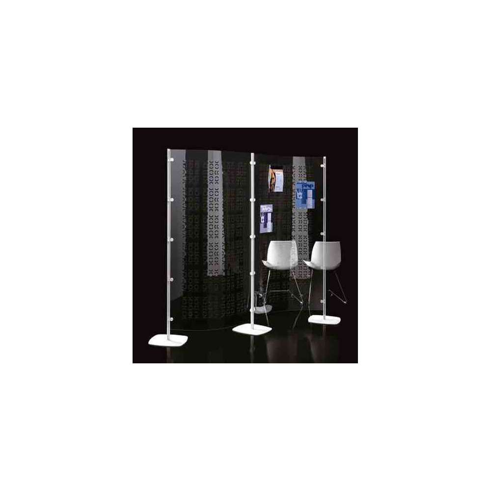Arianna to system modułowy z elastycznymi ściankami działowymi. Panele mocowane są do słupków za pomocą wkrętów lub specjalnych zapięć magnetycznych, które ułatwiają szybki montaż/demontaż panelu.
