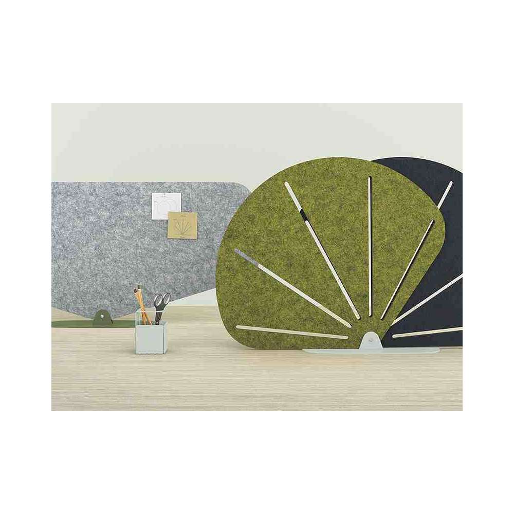 Wszechstronne, ale zabawne ekrany BUTTERFLY tworzą obszary wizualne i akustyczne, idealne w elastycznym środowisku biurowym. Wykonane z filcu z recyklingu PET, charakteryzujące się wysokimi właściwościami akustycznymi, są lekkie i przenośne. Można je obracać na podstawie, rozkładać w celu stworzenia bardziej odosobnionych obszarów lub składać, aby zapewnić lepszą komunikację. Kształty, inspirowane stylizowaną naturą, zachęcają do interakcji z otoczeniem. Dzięki grubemu i gęstemu materiałowi z subtelnym efektem wrzosu, ekrany można również przypinać.