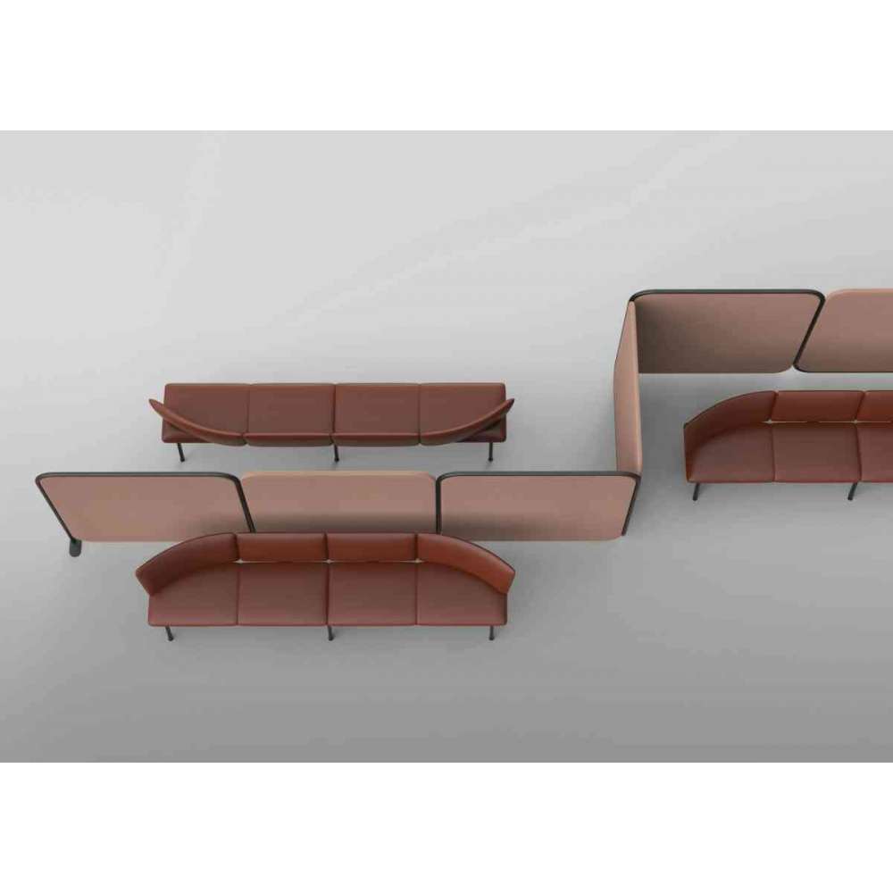 Slice to system ścianek działowych ze zmiennym narożnikiem, wykonany z lakierowanego profilu metalowego w kształcie tuby D.32 oraz panelu w całości tapicerowanego. System jest wyposażony w regulowane nóżki ułatwiające przesuwanie i czyszczenie. Nieskończenie połączone panele tworzą kształty i rozwiązania, które „dostosowują się” do różnych potrzeb architektonicznych i funkcjonalnych.