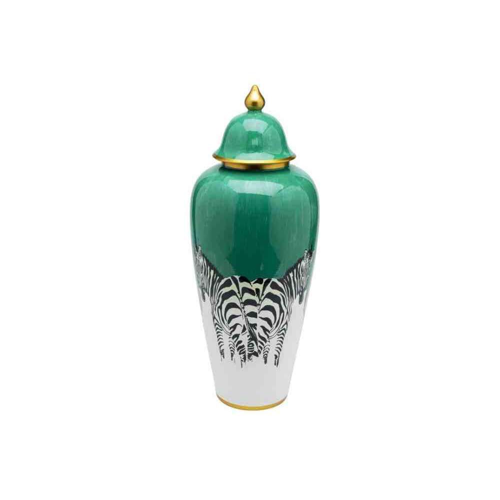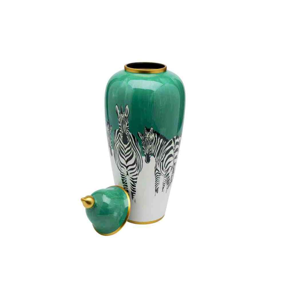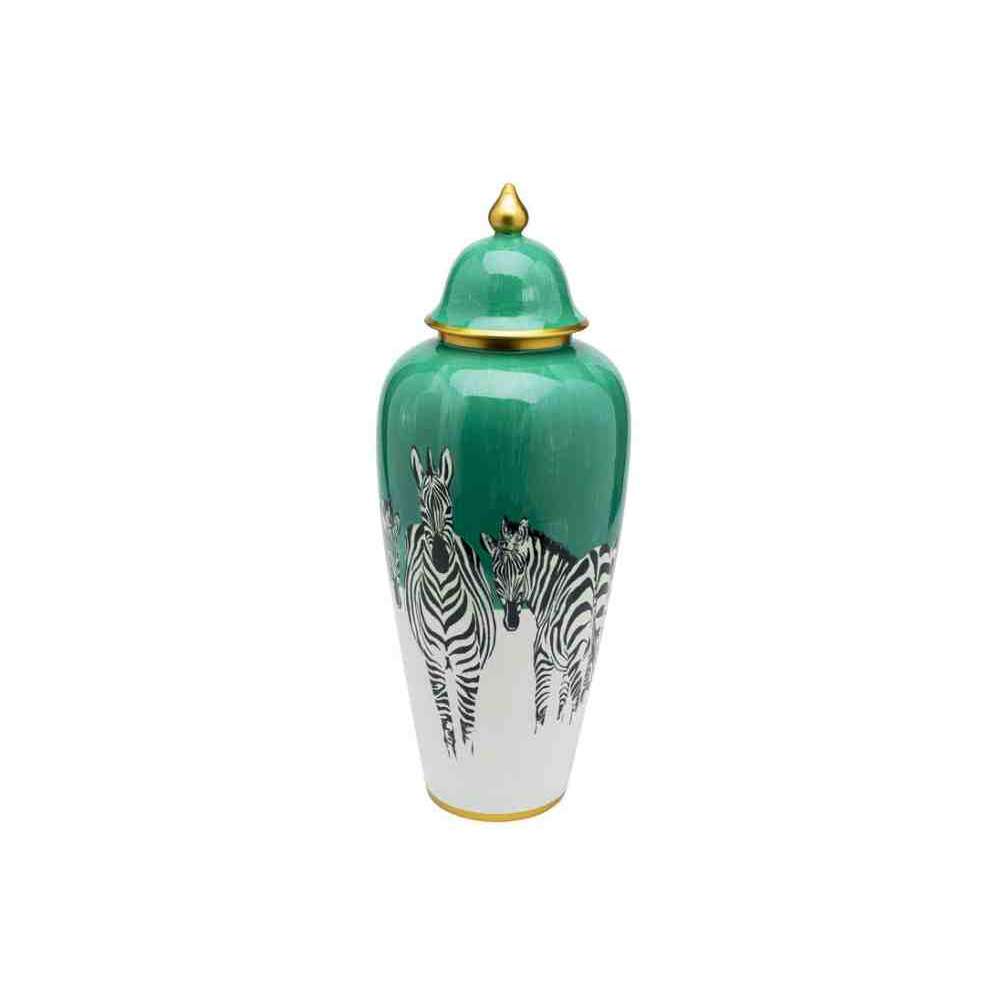 Ten stylowy porcelanowy słoik z ręcznie malowanym motywem zebry przyciąga wzrok na komodzie, kredensie lub półce i oferuje stylowe miejsce do przechowywania, na przykład słodyczy w kuchni lub soli do kąpieli w łazience.