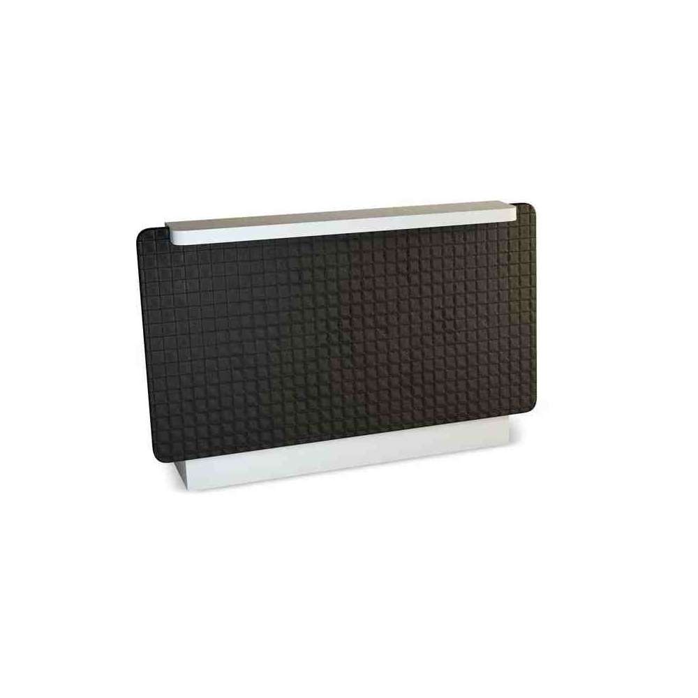 CPT 150 to recepcja z frontem w stylu capitonné z czarnego winylu. Szafki dostępne w kolorze czarnym lub białym.