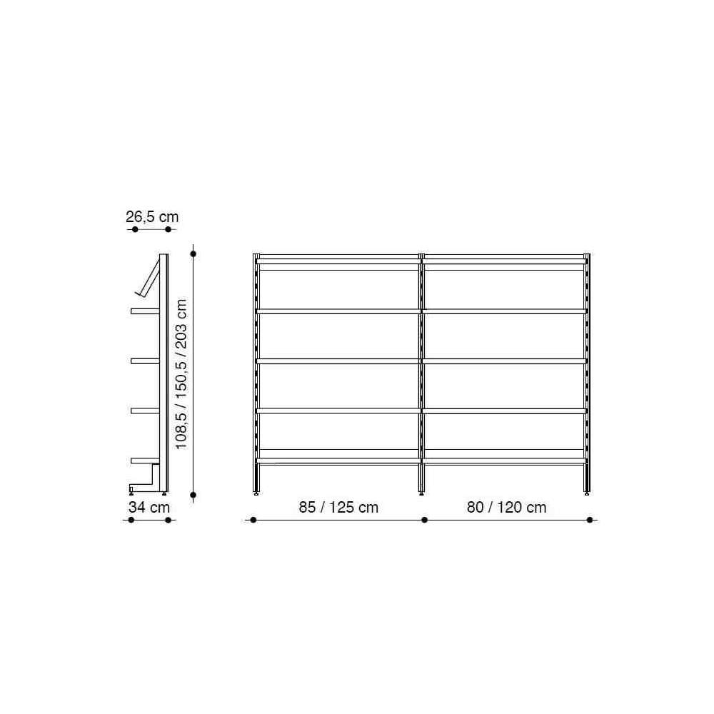 Pomyślany prawie jako element architektoniczny, Duży to metalowy regał, który ma solidne słupki z ekstrudowanego aluminium, sekcję „T” i półki z blachy z wyraźnie zaznaczoną przednią krawędzią, przypominające półki murowane. Jego dobrze zdefiniowane kształty sprawiają, że jest „wielofunkcyjny”, aby podkreślić nowoczesne, hi-tech, klasyczne lub z epoki.