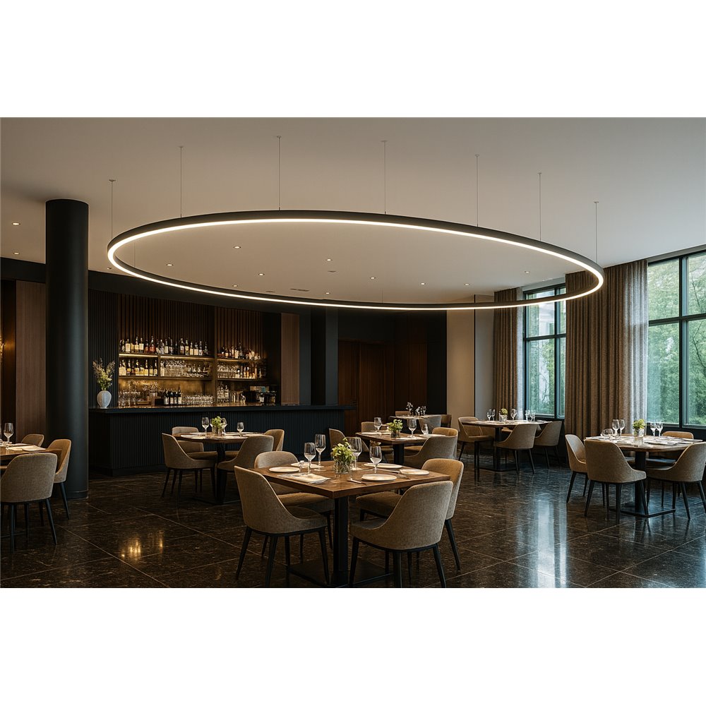 ![]() | Zastosowania publiczneHotele: W holach, korytarzach oraz pokojach hotelowych zapewniają eleganckie oświetlenie, będąc zarówno źródłem ogólnym, jak i punktowym nad łóżkiem czy biurkiem, co podkreśla nowoczesny design i zapewnia komfortowy pobyt gościom. Restauracje: Nad stołami lub barem tworzą przyjemną atmosferę, dodając elegancji i równomiernie oświetlając przestrzeń, co podkreśla estetykę wnętrza i tworzy dogodne warunki dla gości. Kawiarnie i bary: Oprócz funkcji oświetleniowych, pełnią również rolę dekoracyjną, podnosząc elegancję i nowoczesność wnętrza, a zawieszone nad stołami lub stanowiskami barowymi dodają przestrzeni charakteru. Sale konferencyjne i spotkaniowe: Zapewniają prestiżowe oświetlenie ogólne, dostarczając wystarczającej ilości światła do pracy, co sprzyja efektywnemu przebiegowi spotkań biznesowych. Sklepy i galerie sztuki: Wyeksponowują produkty lub dzieła sztuki, dzięki czemu dodają im atrakcyjności i podkreślają ich walory estetyczne, co przyciąga uwagę klientów czy zwiedzających. Lampy "Elipsa II" nie tylko spełniają funkcje oświetleniowe, ale także stanowią element aranżacyjny, który nadaje charakteru i elegancji różnym przestrzeniom. |