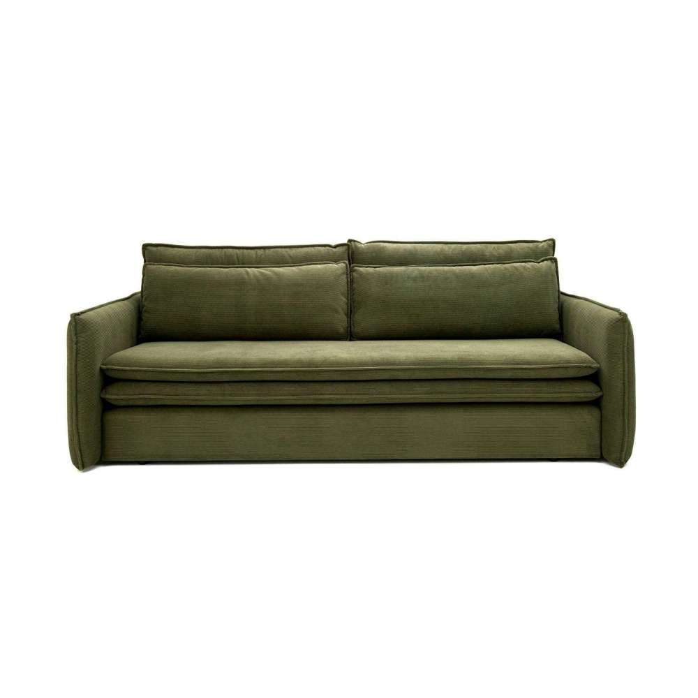 Sofa SENSE SLIM z funkcją spania. Nowoczesny design połączono z funkcjonalnością. Sofa Sense zapewnia najwyższą jakość oraz wykonanie dzięki Polskiej produkcji. Miękkie, wygodne siedzisko wykonano ze sprężyny falistej oraz pianki PUR. Prezentowana na zdjęciu tkanina to przyjemna w dotyku tkanina sztruksowa w jasnobeżowym wykończeniu z grupy tkanin Poso. Jest to materiał odporny na ścieranie oraz działanie światła. Dostępne również tkaniny łatwoczyszczące oraz hydrofobowe. Dodatkowy komfort zapewniają poduszki oraz dwuwarstwowy materiał, który doskonale sprawdzi się po rozłożeniu mebla do nocnego wypoczynku. Wbudowany pojemnik na pościel pozwoli na schowanie pościeli oraz poduszek podczas dnia. Możliwość personalizacji sprawia, że możesz stworzyć wymarzoną sofę o idealnej kolorystyce i tkaninie, pasującej do Twojego wnętrza. Dostępna również wersja z szerszymi podłokietnikami. Wymiary: wys. 82 cm / szer. 230 cm / gł. 103 cm Wysokość do krawędzi siedziska: 43 cm.