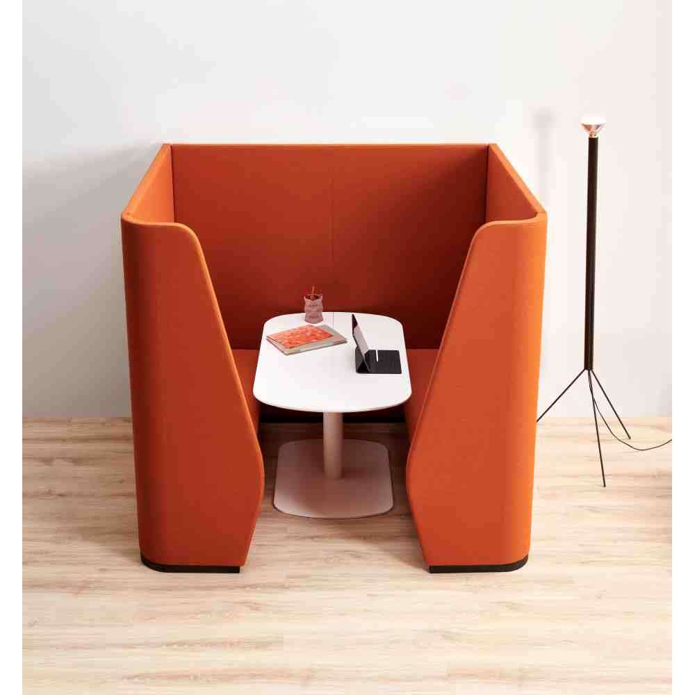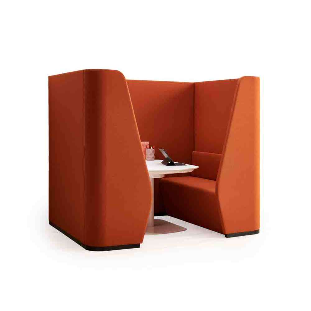 Chat Sofa to kompaktowe i wygodne, dźwiękochłonne kabiny biurowe pokryte tkaniną, które wyznaczają półzamkniętą przestrzeń, w której można odizolować się i skoncentrować na pracy lub pracy zespołowej bez przeszkadzania i przeszkadzania . Rozkładany stół pozwala na pracę w zespołach dwu lub więcej współpracowników oraz posiada dostęp do zasilania do ładowania urządzeń. W ten sposób przestrzeń jest zamykana w przestrzeni, aby zapewnić prywatność we wspólnych ustawieniach.