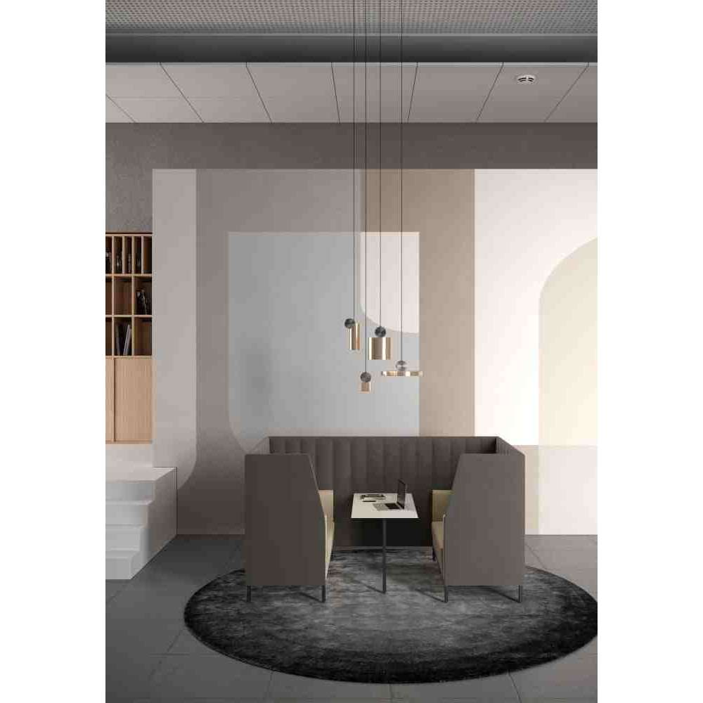 Fotel i sofa 2-osobowa z niskim i wysokim oparciem oraz jedno lub dwukolorowymi obiciami, na nogach ze stali lakierowanej w kolorze białym, czarnym lub chromowanym. Nadaje się do spotkań i poczekalni.