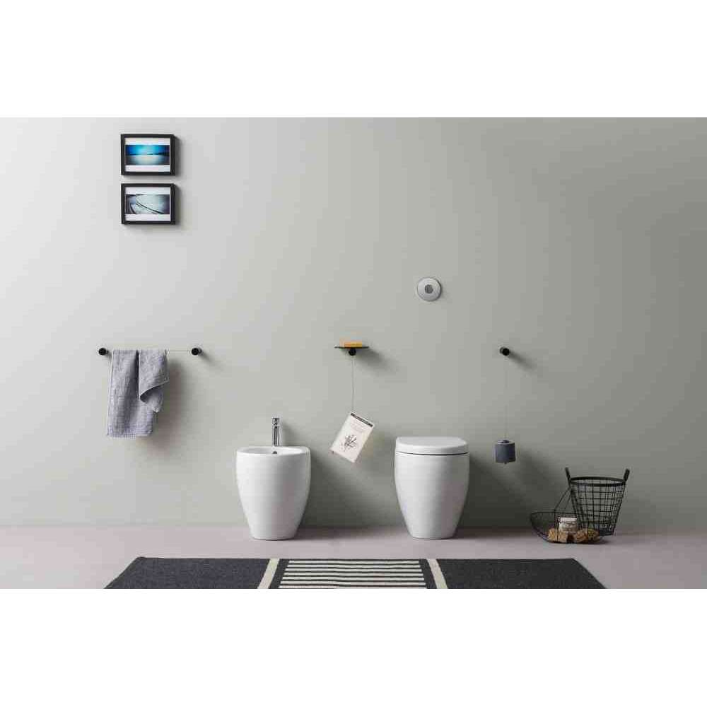 Kabel pełni rolę wieszaka na ręcznik do umywalki i bidetu, ale jest też przydatnym wspornikiem, na którym można powiesić różne akcesoria, takie jak suszarka do włosów czy szczotka. Na cylindrycznych korpusach można znaleźć małą powierzchnię podparcia na mydło i butelki oraz element zabezpieczający o wadze do 120 kg: cechy, które podkreślają filozofię i misję promowaną przez Ever Life Design.
