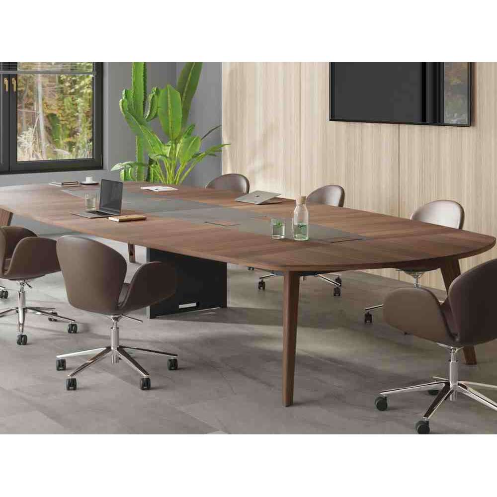 Owalny stół konferencyjny z drewna fornirowanego z systemem prowadzenia kabli