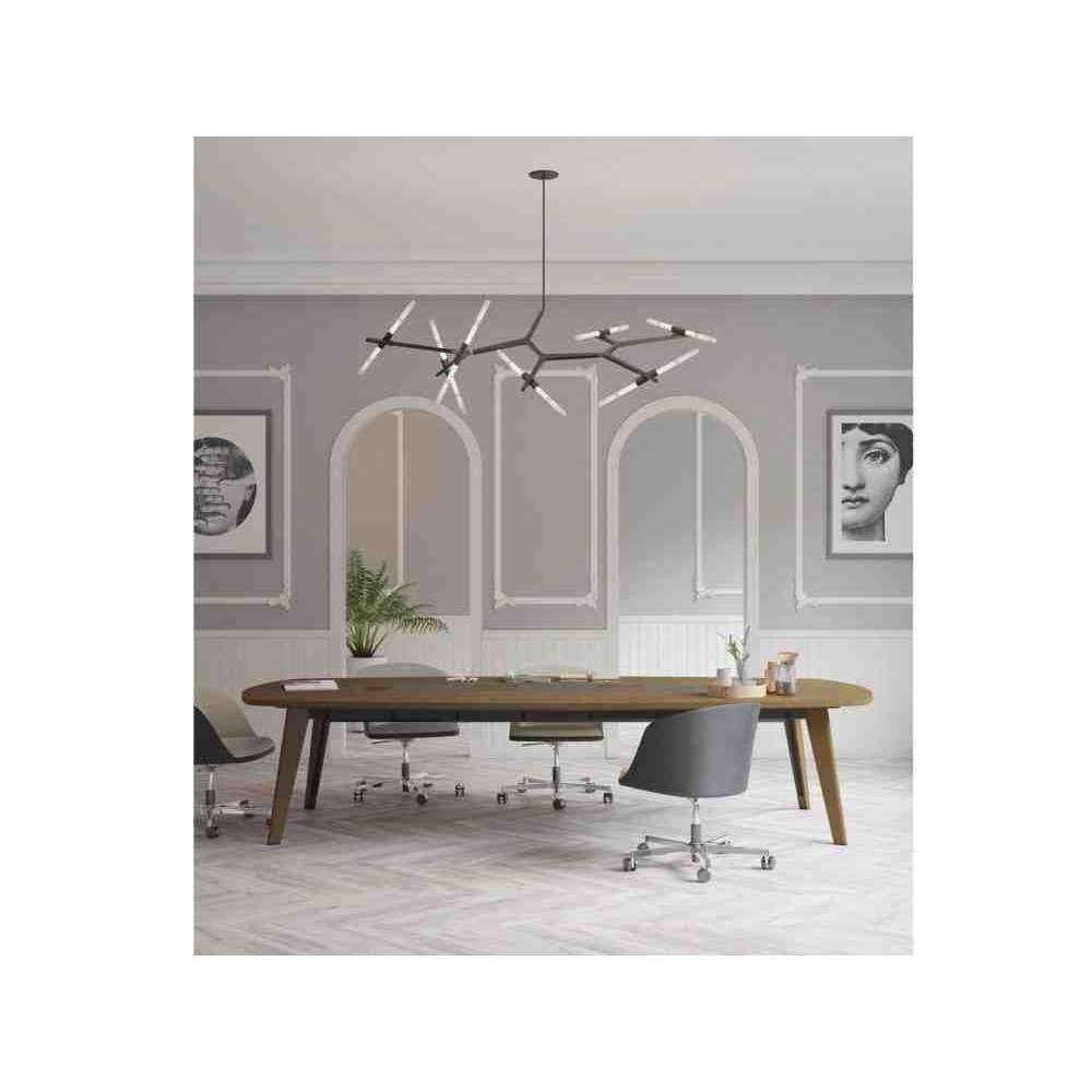 Mikado autorstwa Ersa to stół konferencyjny o prostych liniach, ale z innowacyjnym wizerunkiem: duży owalny blat wykonany jest z fornirowanego drewna i charakteryzuje się malowanym detalem, który zakrywa kabel zarządzanie, które przekracza wzdłużnie szczyt, aby zoptymalizować doświadczenie użytkownika. Dostępna jest w różnych okleinach drewnianych, laminatach i laminatach kompaktowych, natomiast w przypadku lakierowanych części metalowych w 3 wariantach kolorystycznych.