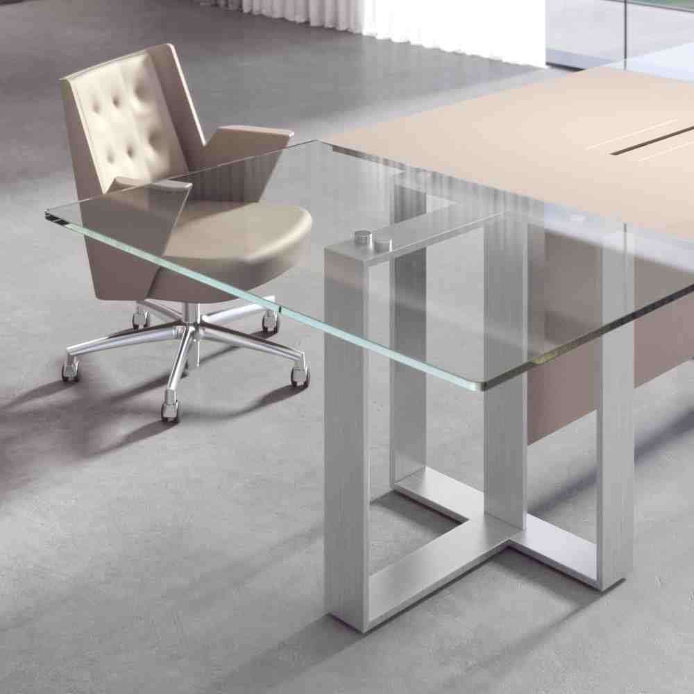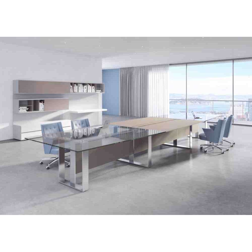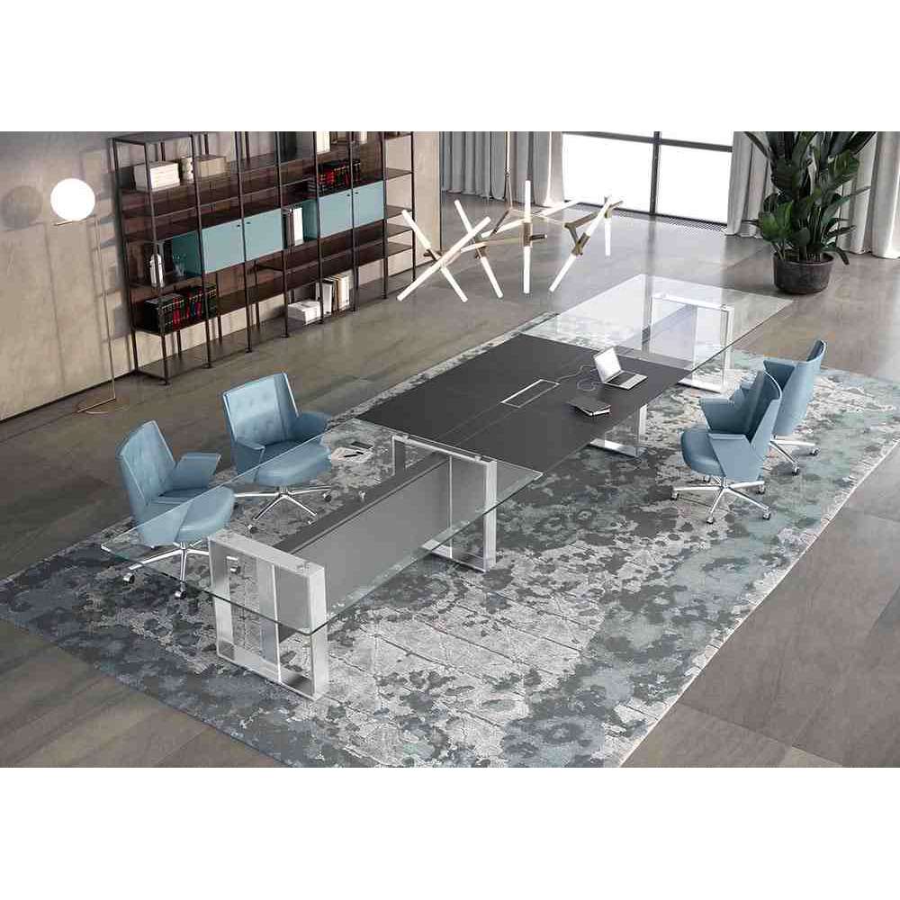 Stół konferencyjny z drewna i szkła z systemem zarządzania kablami Estel Group Altagamma