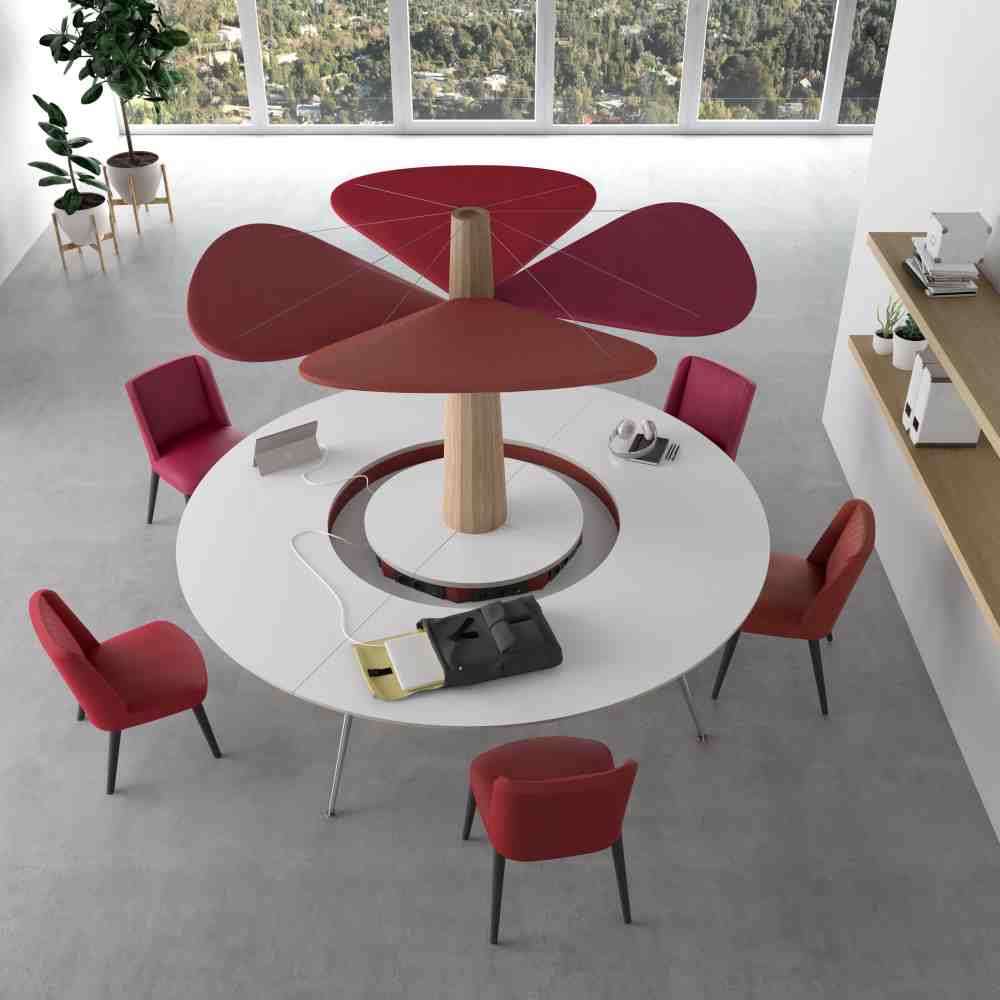 Okrągły Baobab i Kwadratowy Baobab to uniwersalne stoły dzielone wyposażone w przestronne blaty robocze, które mogą pomieścić do 8 osób na pojedynczych lub wspólnych stanowiskach roboczych. Rozwiązanie, które doskonale wpisuje się w ducha włoskiego Smart Office i jego kluczowe koncepcje: funkcjonalność, kultura współdzielenia, łączność i design.