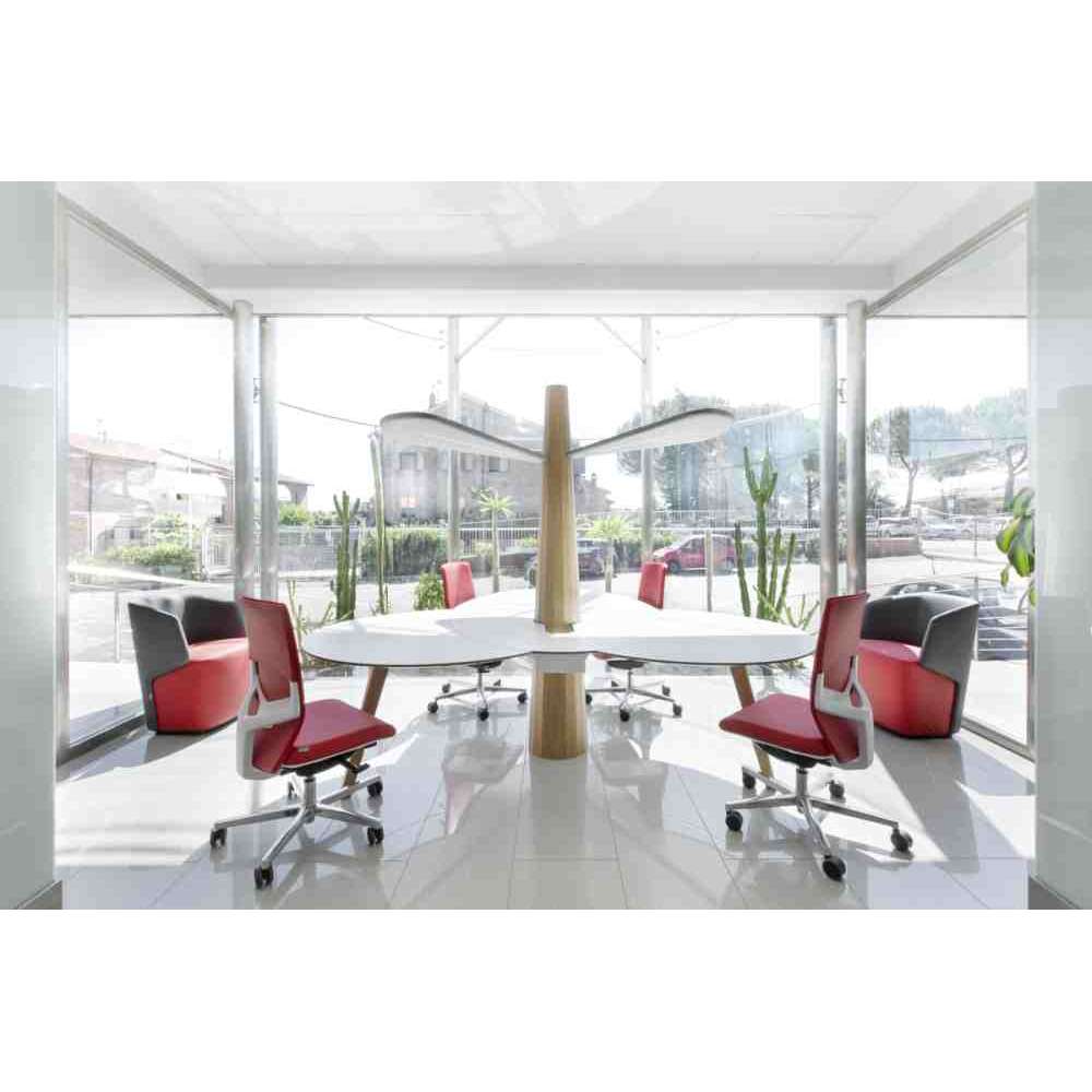 Okrągły Baobab i Kwadratowy Baobab to uniwersalne stoły dzielone wyposażone w przestronne blaty robocze, które mogą pomieścić do 8 osób na pojedynczych lub wspólnych stanowiskach roboczych. Rozwiązanie, które doskonale wpisuje się w ducha włoskiego Smart Office i jego kluczowe koncepcje: funkcjonalność, kultura współdzielenia, łączność i design.