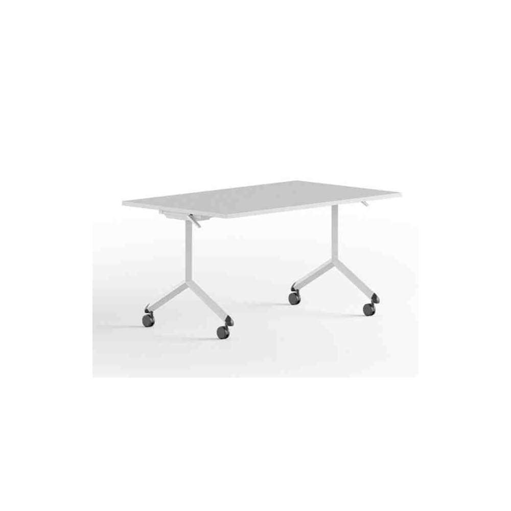 Flipaway to stół do środowiska konferencyjnego, wyposażony w laminowany blat i kółka do łamania, zapewniający pełną możliwość układania w stosy z przodu.