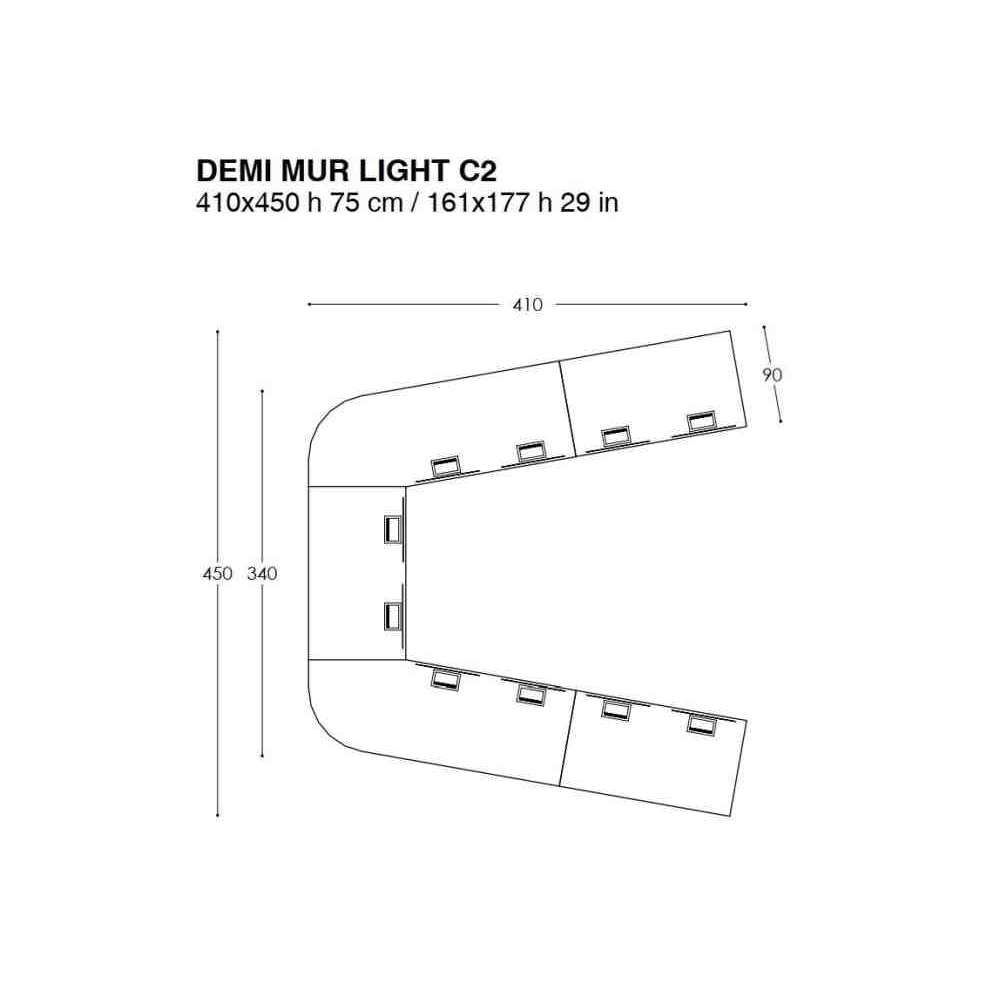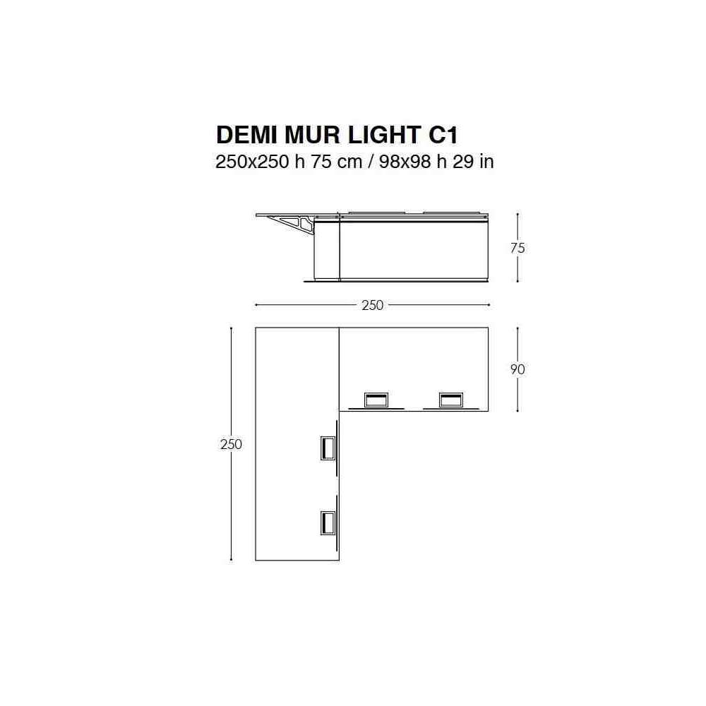 Pulpit i modułowy stół konferencyjny DEMI MUR LIGHT . Składa się z wielopozycyjnego panelu przedniego/ściany strukturalnej, która służy również jako miejsce do przechowywania kabli. Blat roboczy wsparty na metalowych wspornikach przymocowanych do ściany konstrukcyjnej. Urządzenie montuje się na metalowej podstawie.