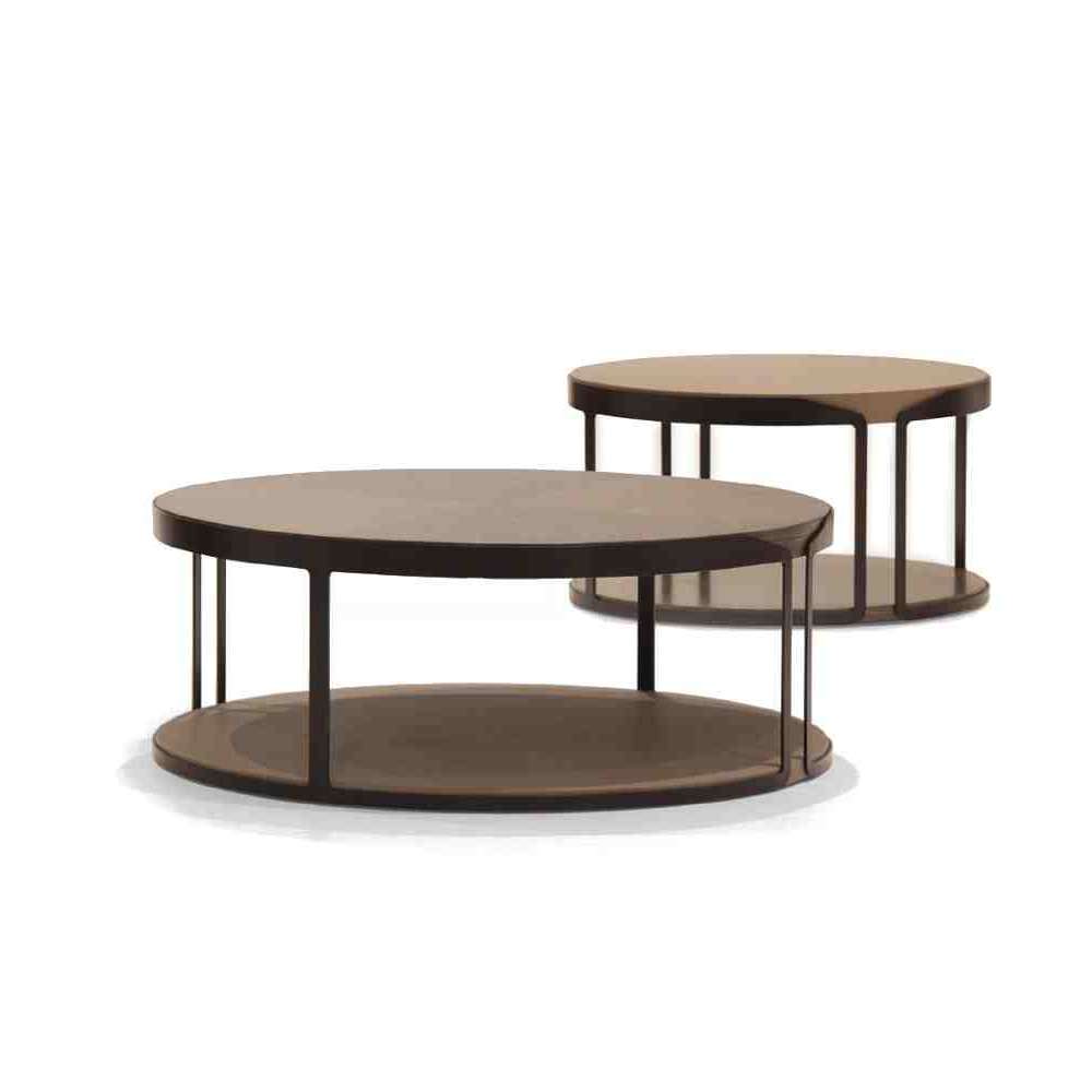 V 155 - Stolik kawowy z blatem fornirowanym dębowym szarym półbłyszczącym, metalowa konstrukcja lakierowana z efektem drapania, podstawa ze skóry "seta liquirizia".