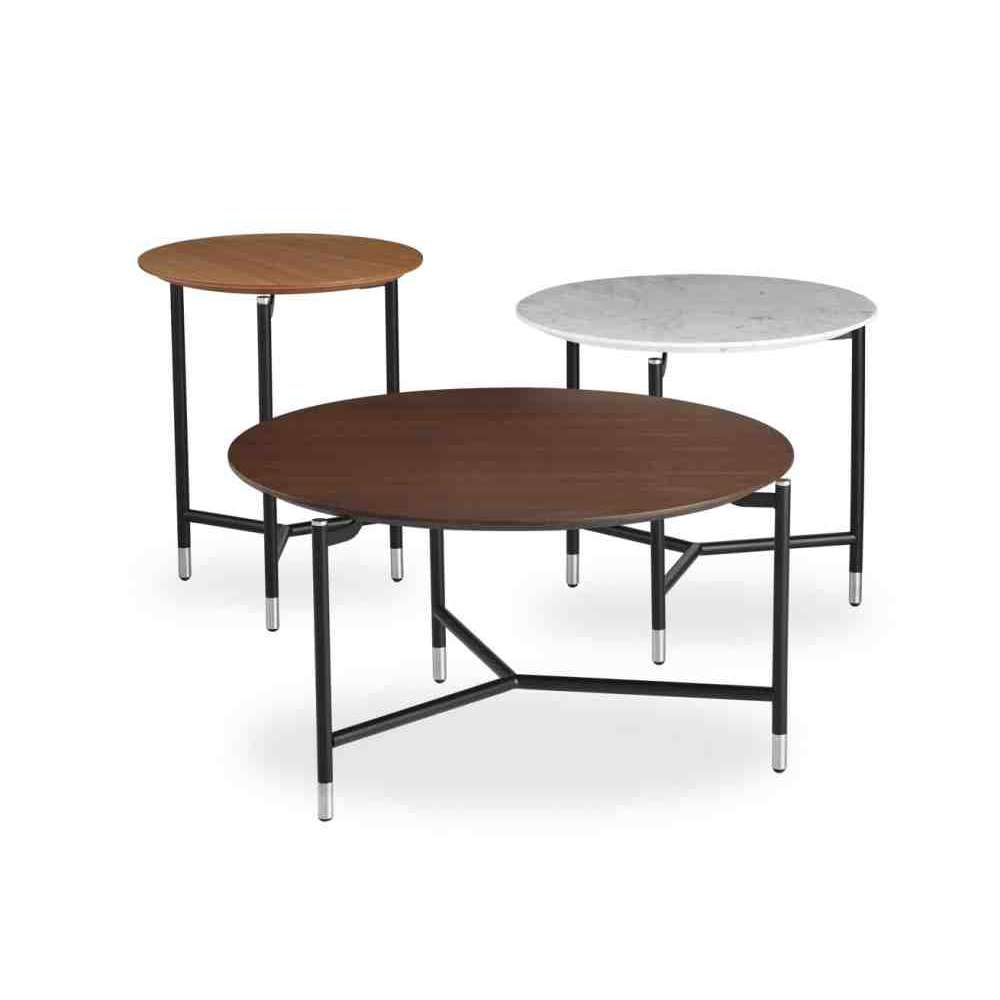 B&T Design wykonuje metalową podstawę rurową z białą i czarną farbą proszkową w standardzie z końcówkami można zamówić w kolorze chrom lub innym. Blaty można zamówić w okleinie naturalnej, laminacie, lakierze, w opcji stoły szklane i marmurowe produkowane są w trzech różnych rozmiarach jako stoliki środkowe i boczne. Osiąga skromną postawę z detalami.