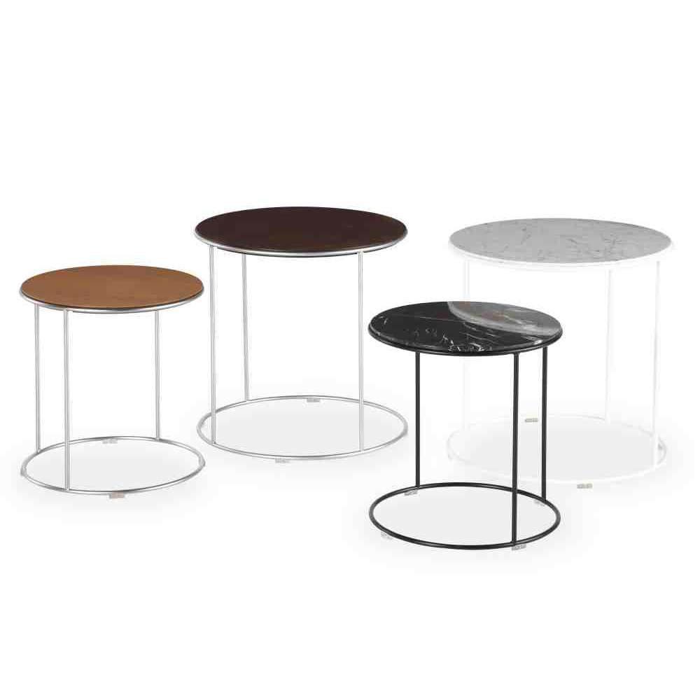 Z okrągłym stołem i eleganckim wyglądem, Petty prezentuje postawę w każdym miejscu, w którym jest zainstalowany. Okrągły kształt blatu jest kontynuowany i powtarzany na dole poprzez solidny, smukły metalowy profil. Rama główna wykonana jest z solidnych belek transmisyjnych, malowanych na kolory matowego i polerowanego chromu lub lakieru statycznego. Jest to poręczny stół do noszenia ze sobą na drinka lub do innego użytku wokół sofy lub fotela. Blat może być wykonany z marmuru, fornirów z naturalnego drewna, lakieru matowego oraz laminatu.