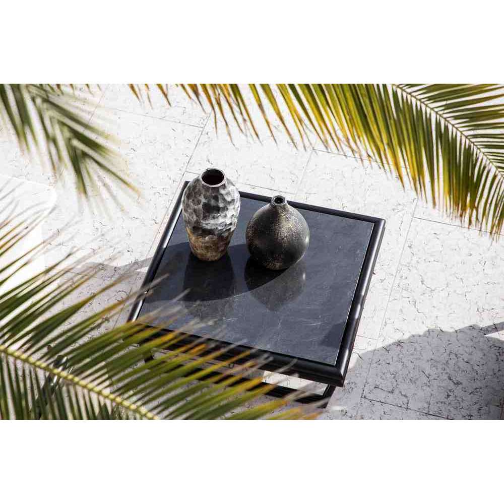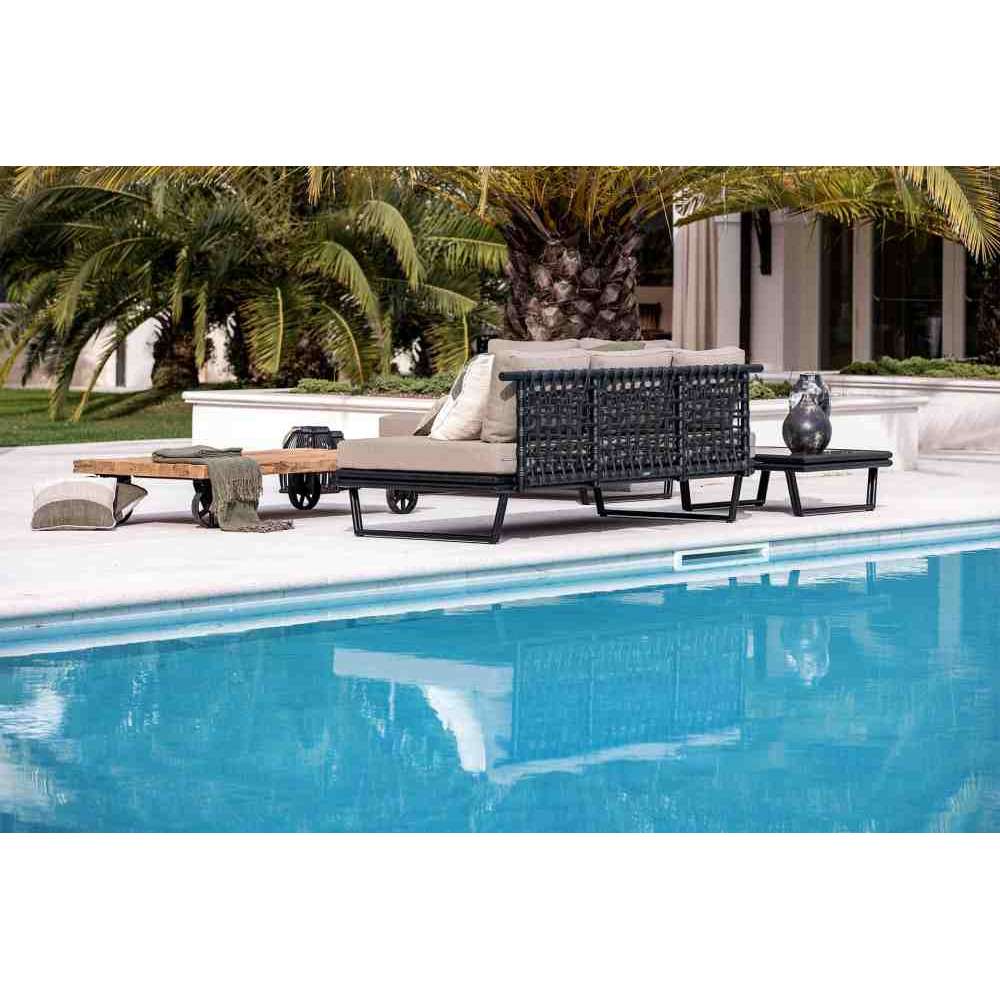 Kawa i pogawędka na świeżym powietrzu, delektując się pięknem zachodzącego słońca: kolekcja Nicosia, składająca się z wygodnych sof i stylowych stolików kawowych.