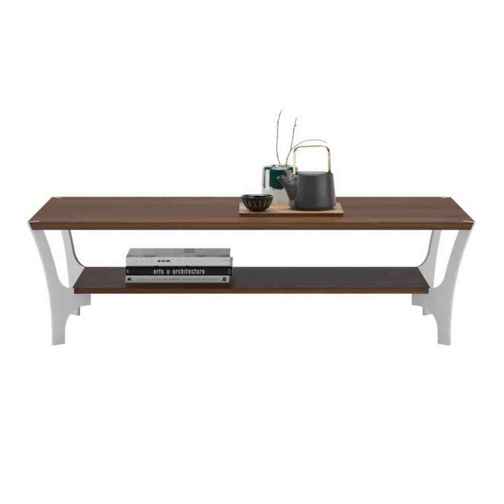 Prostokątny stolik kawowy z forniru drewnianego z wbudowanym stojakiem na czasopisma