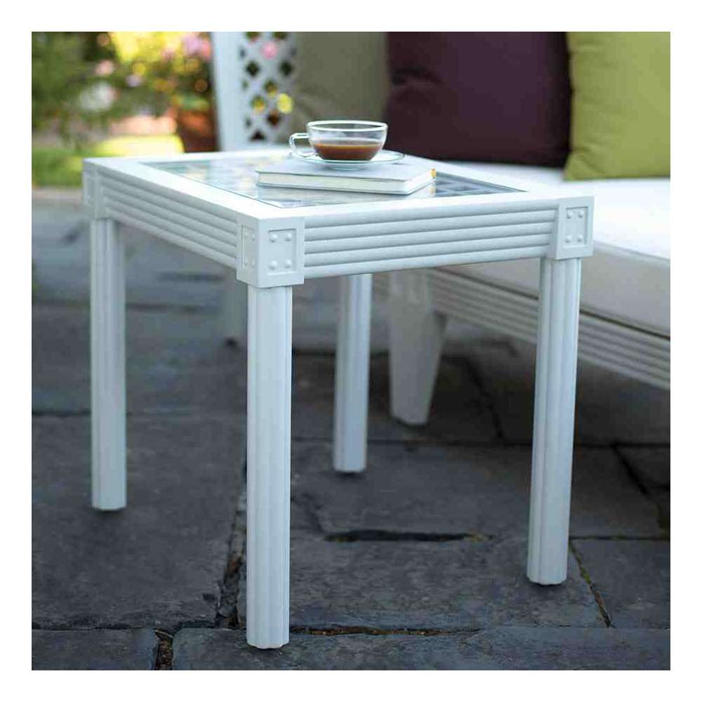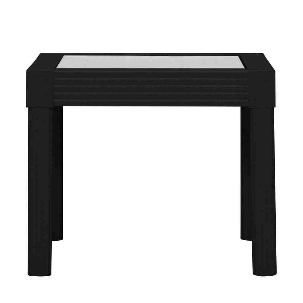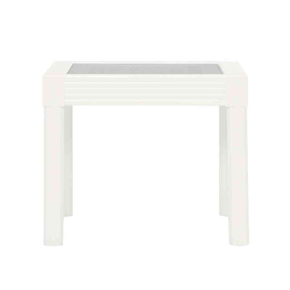 Kwadratowy stolik boczny ze szklanym blatem, prostokąt.