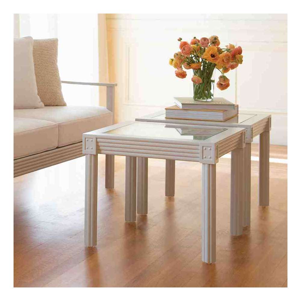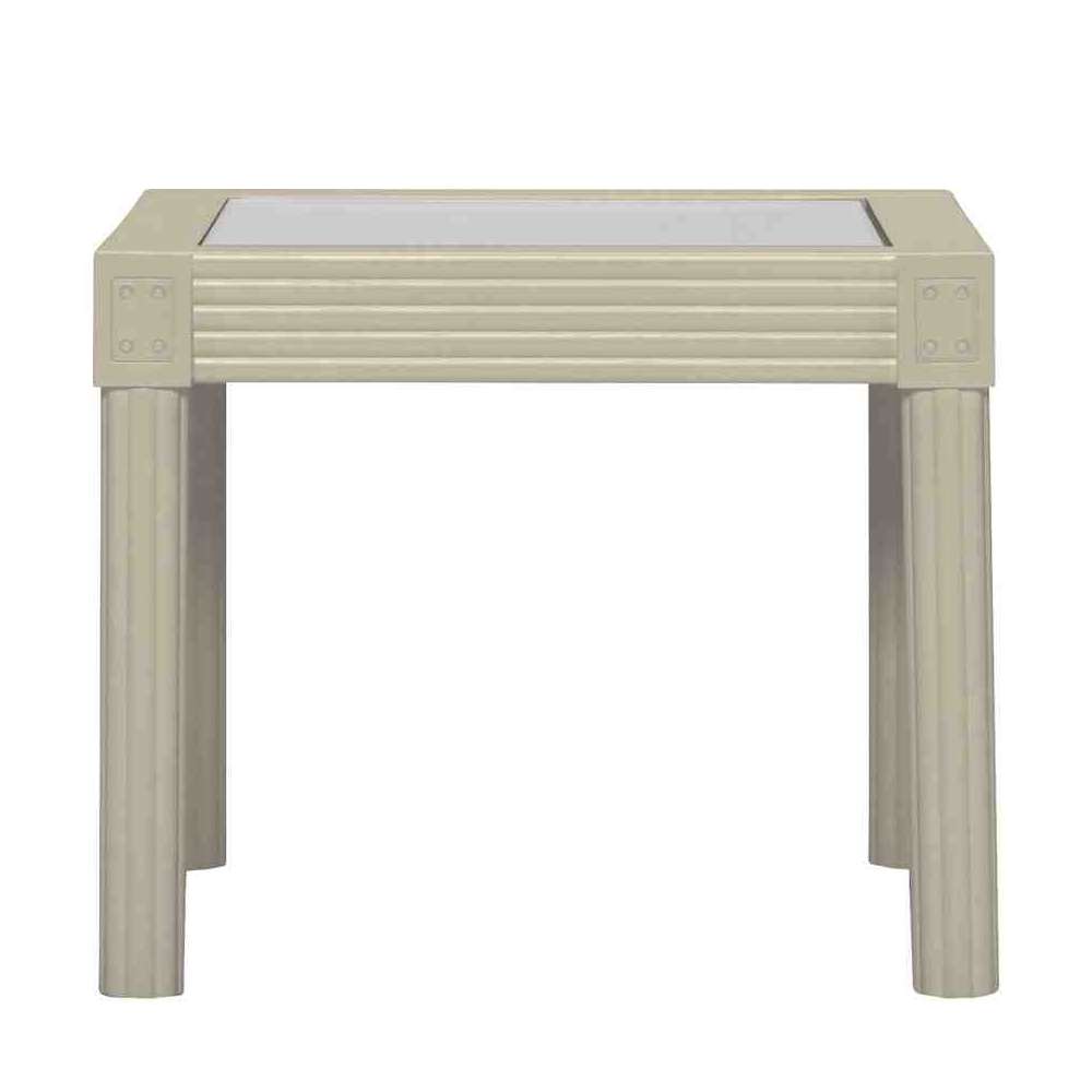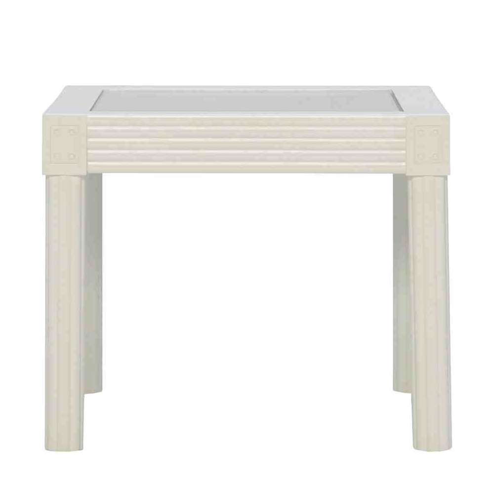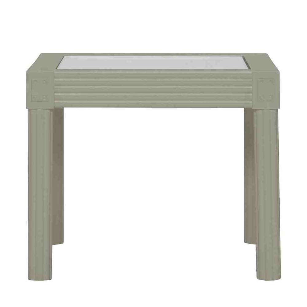 Kwadratowy stolik boczny ze szklanym blatem, prostokąt.