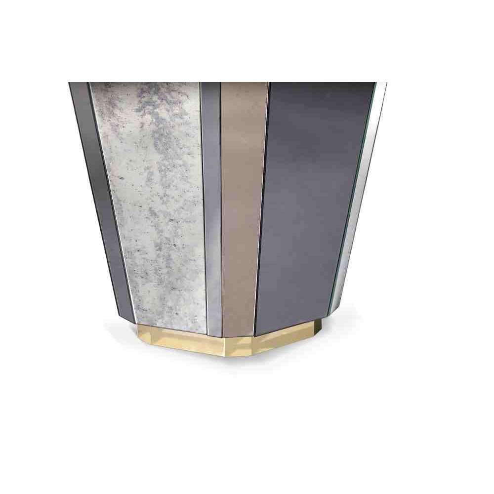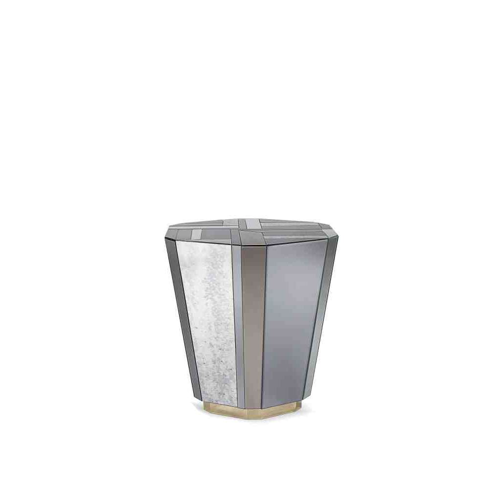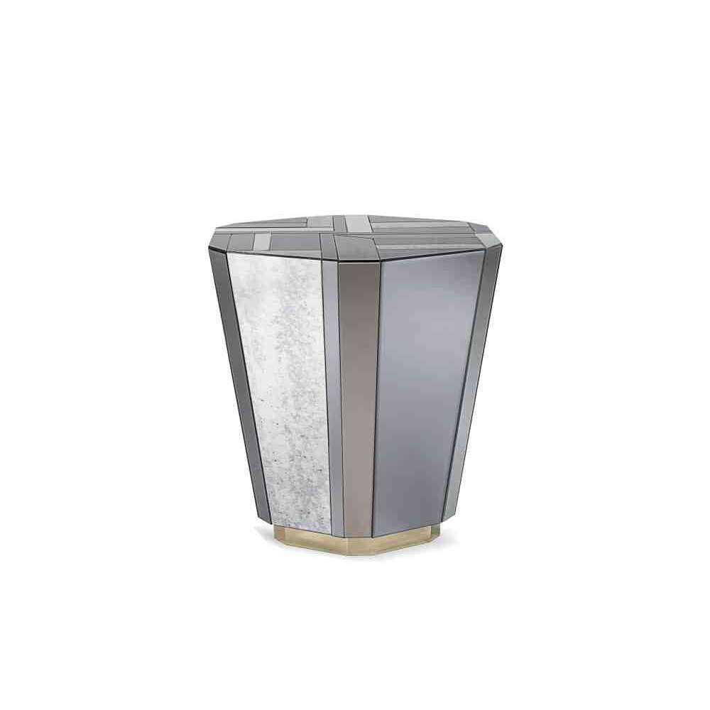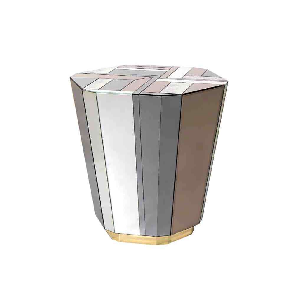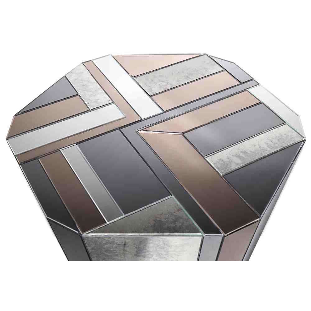 Stolik boczny Lemprica łączy burzliwe dziesięciolecie lat 20-tych z bogatymi kanciastymi kształtami i wielokolorowym szkłem z okresu Art Deco.